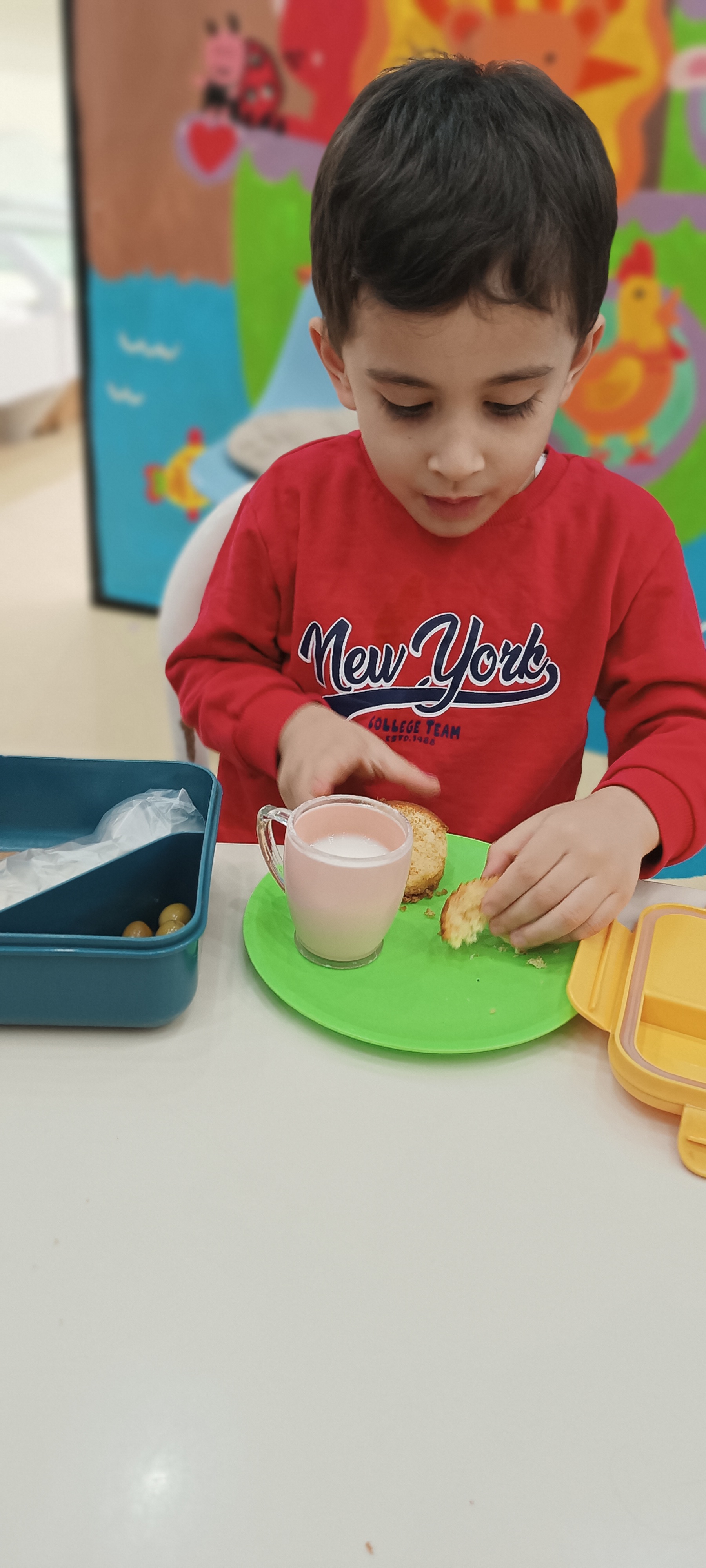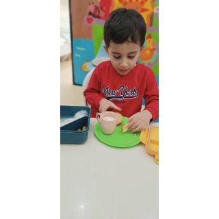 .حالا برای تجدید انرژی رفتیم سراغ میان وعده و کیک و شیر خوردیم با میان وعده هایی که مامان باباها زحمت کشیدن🥝🍇🫐🌮