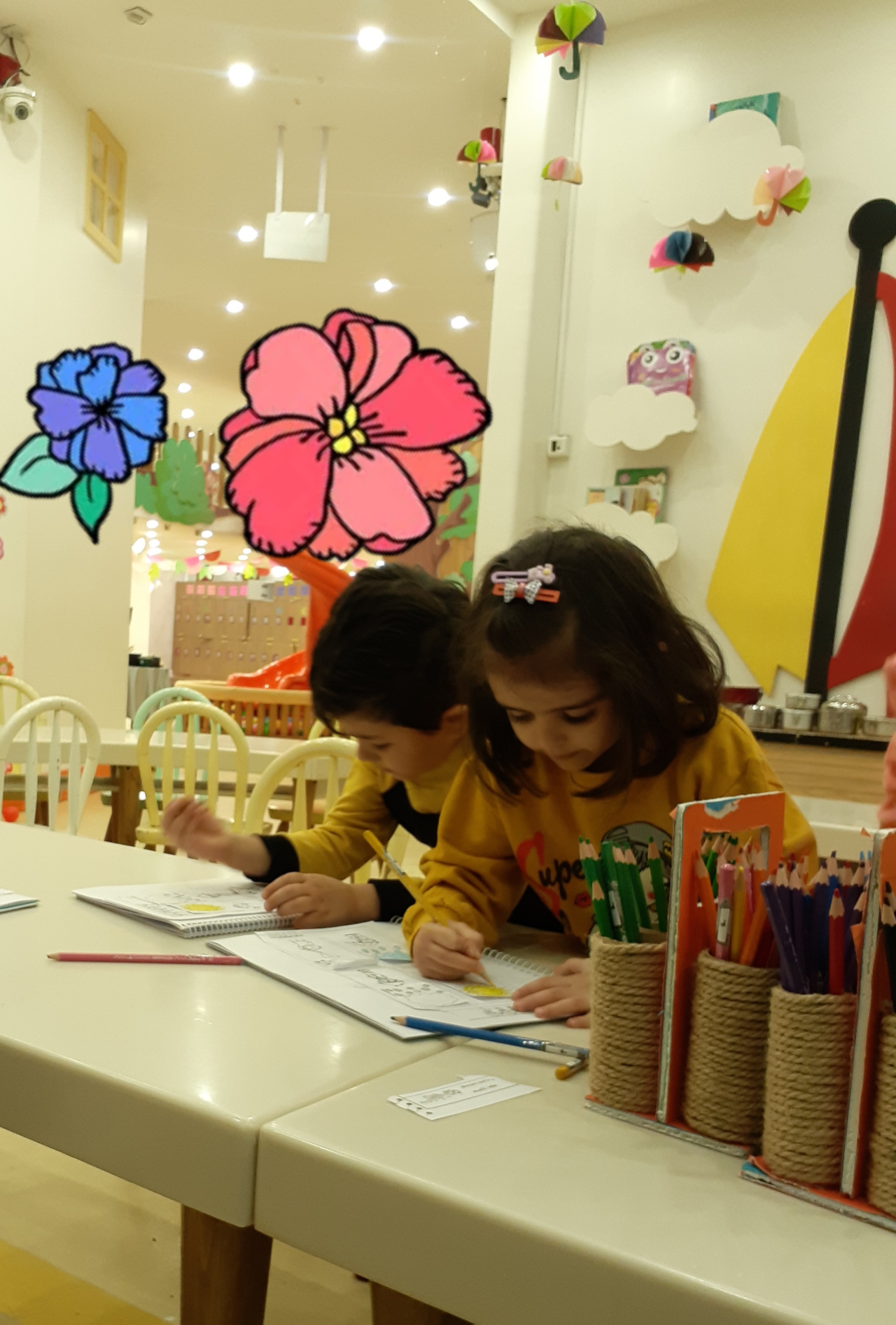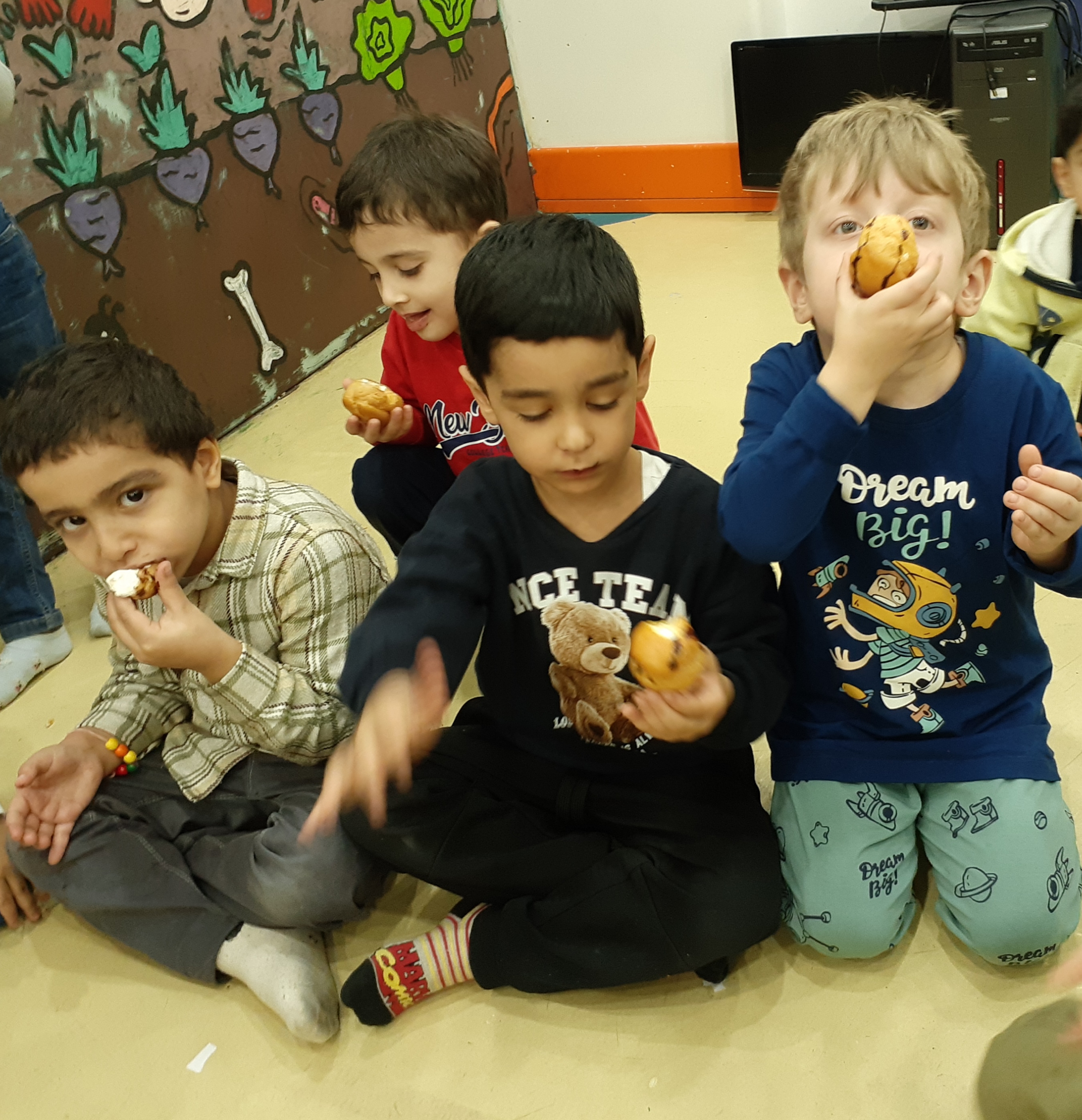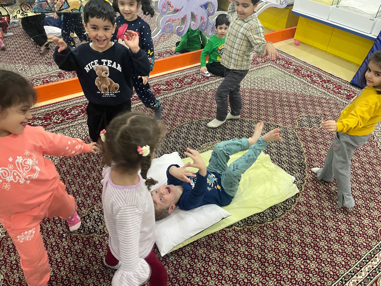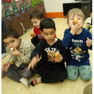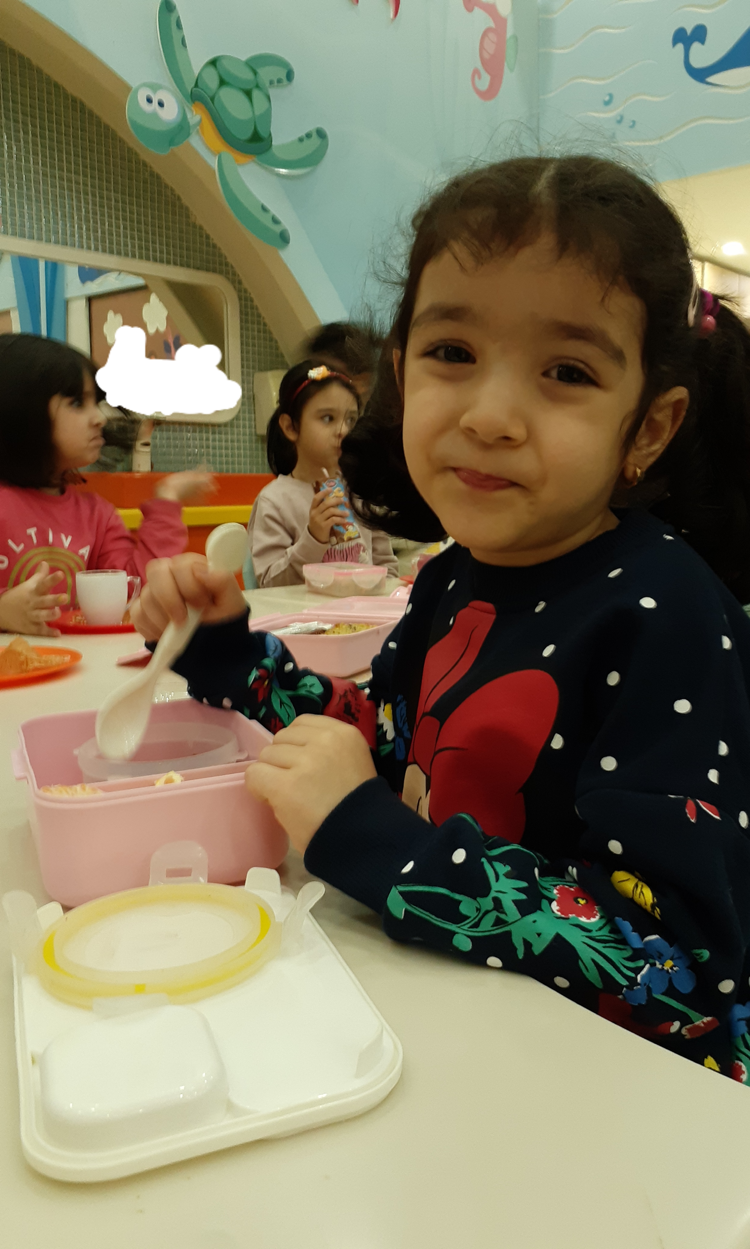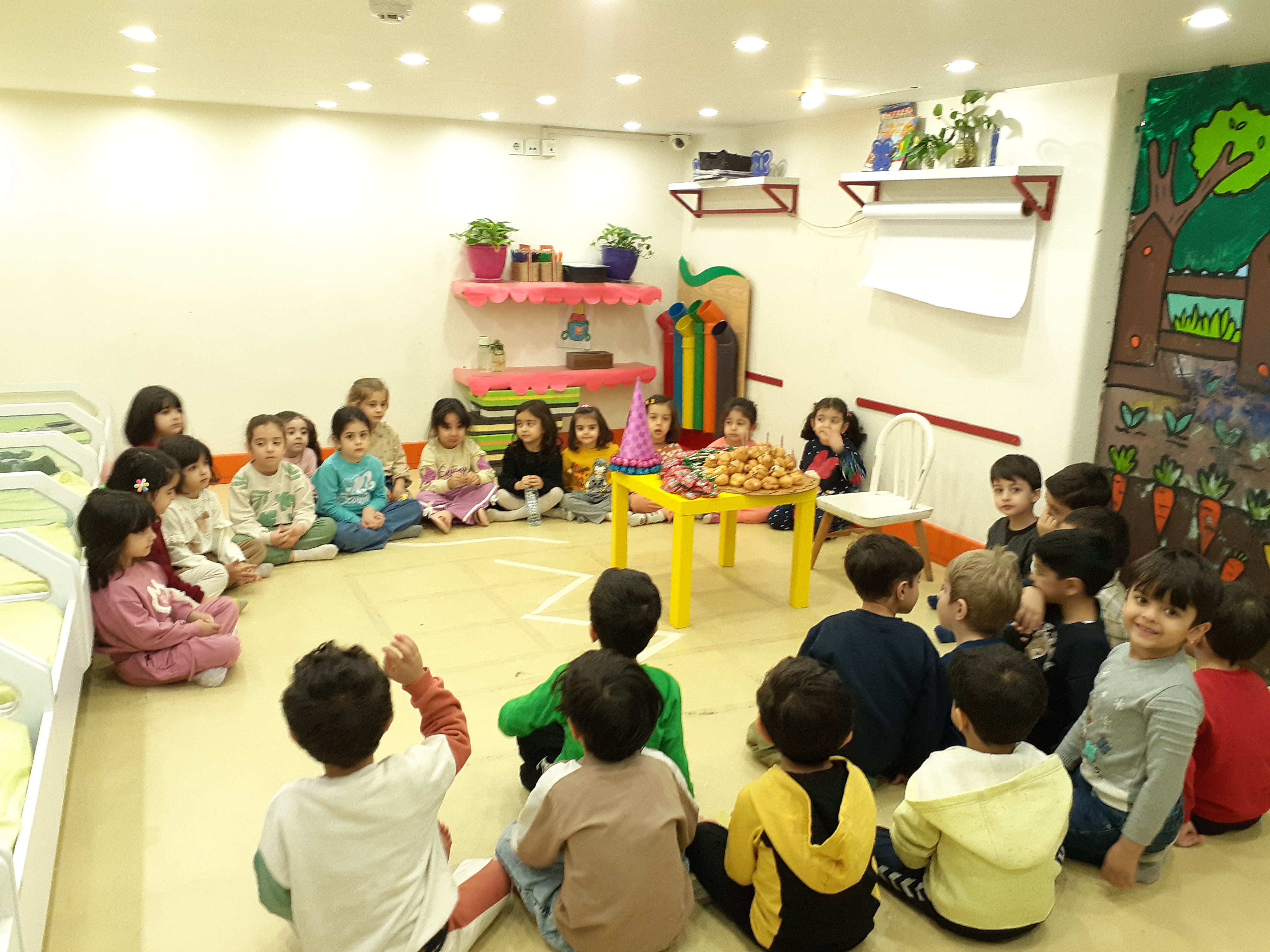 محاسن: اجرای نمایش دختر کوچولویی که مریض شده ،مهدکودک نرفته تا دوستاش مریض نشن ولی یه آسمون فرشته حواس شون هست تا همه ی بچه مسلمان ها خوبی ها براشون نوشته بشه و بعدش بچه ها کمپوت گیلاس خوردند.