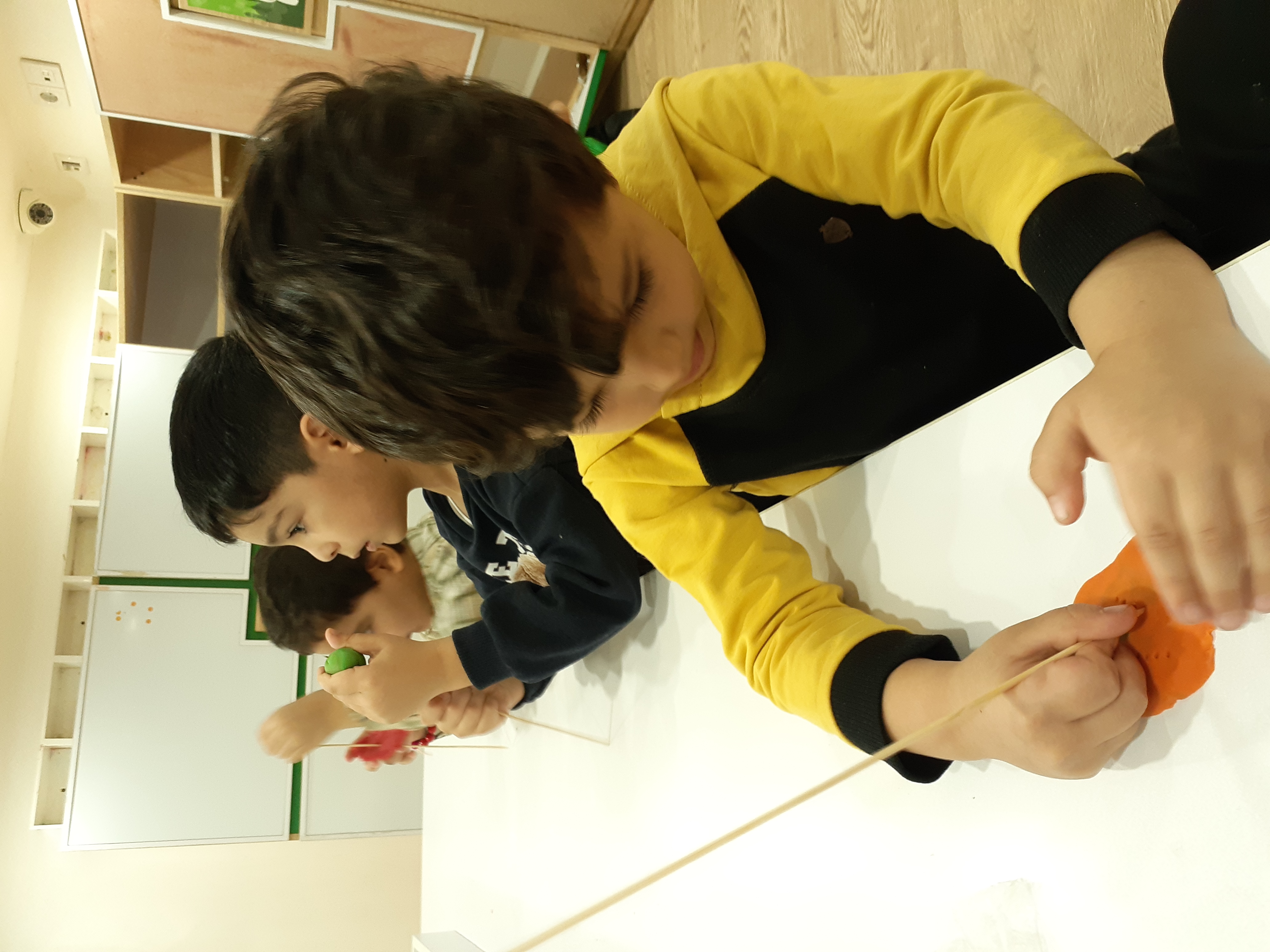 شهرک خمیر بازی داشتیم و با سیخ چوبی شکل مربع رو سوزن کاری کردیم.