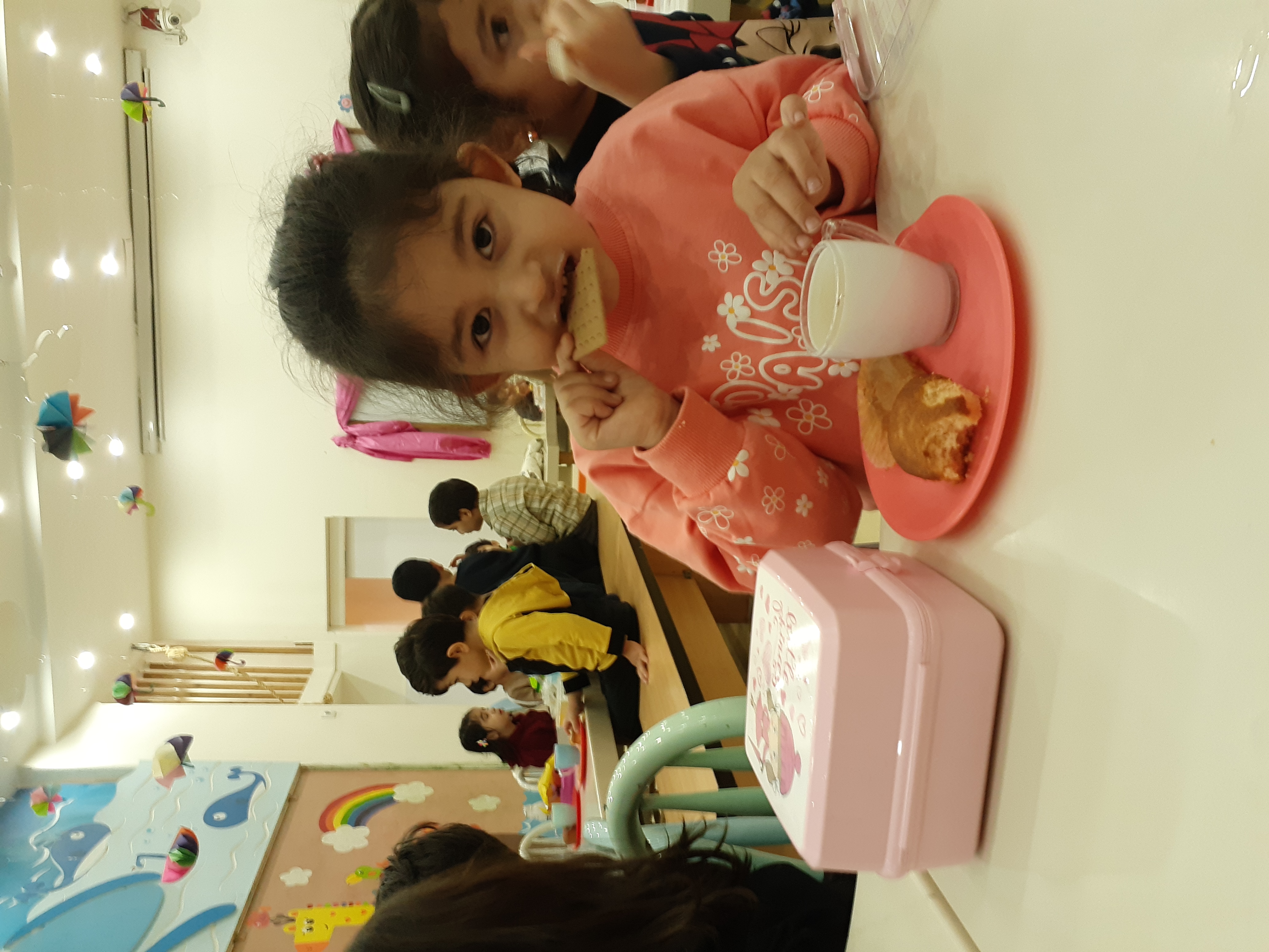 بعدش نوبت رسید به میان وعده هامون (کیک یزدی، شیر)😋