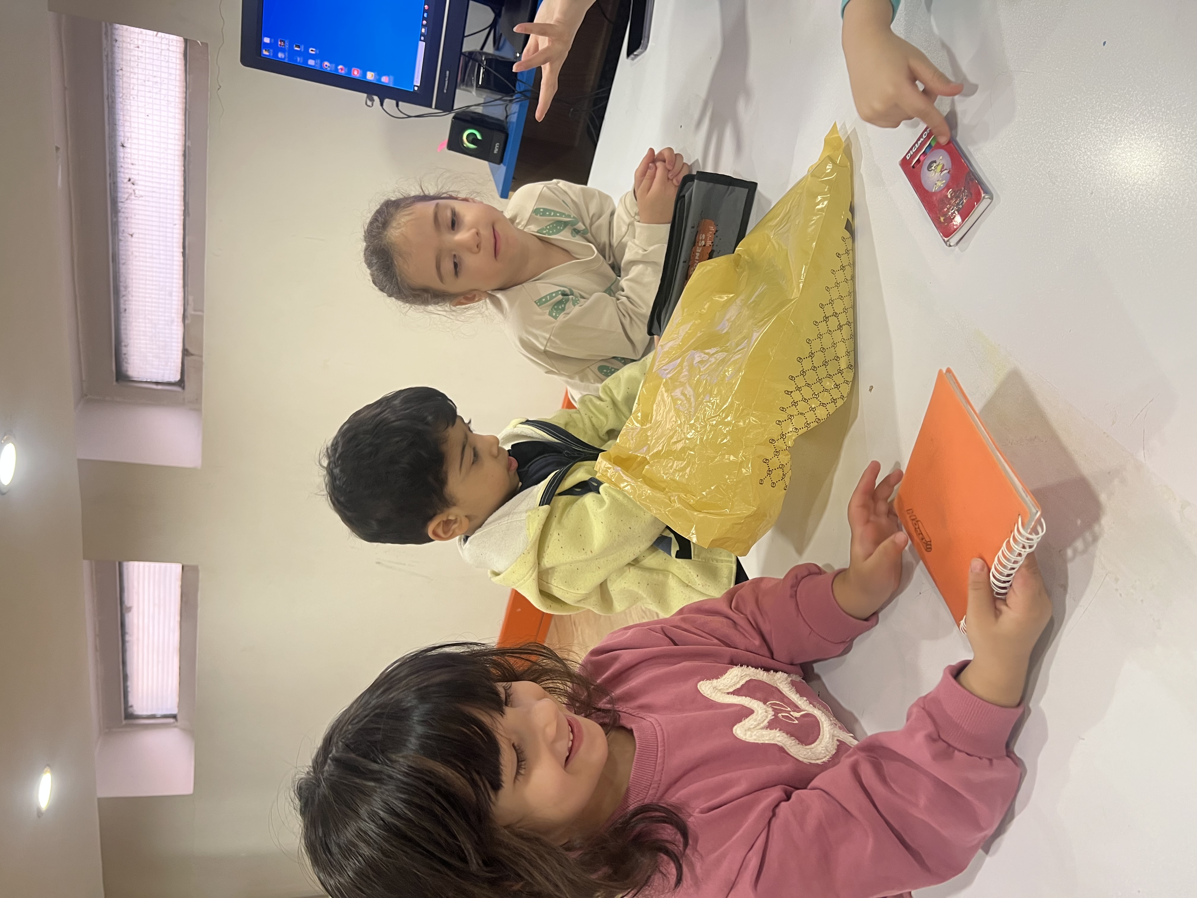 و راه افتادیم به سمت کلاس خاله الهه عزیز، کلاس محاسن که نمایش کوچولوهایی بود که موقع بیماری، خونه استراحت میکنن💆🏻 تا دوستاشون مریض نشن و با اینکارشون 🧚🏻فرشته ها 🧚🏻کلی ثواب و جایزه به بچه مسلمونا میدن.بعد از اجرا به مناسبت هفته کتاب خوراکی جایزه گرفتیم🍬