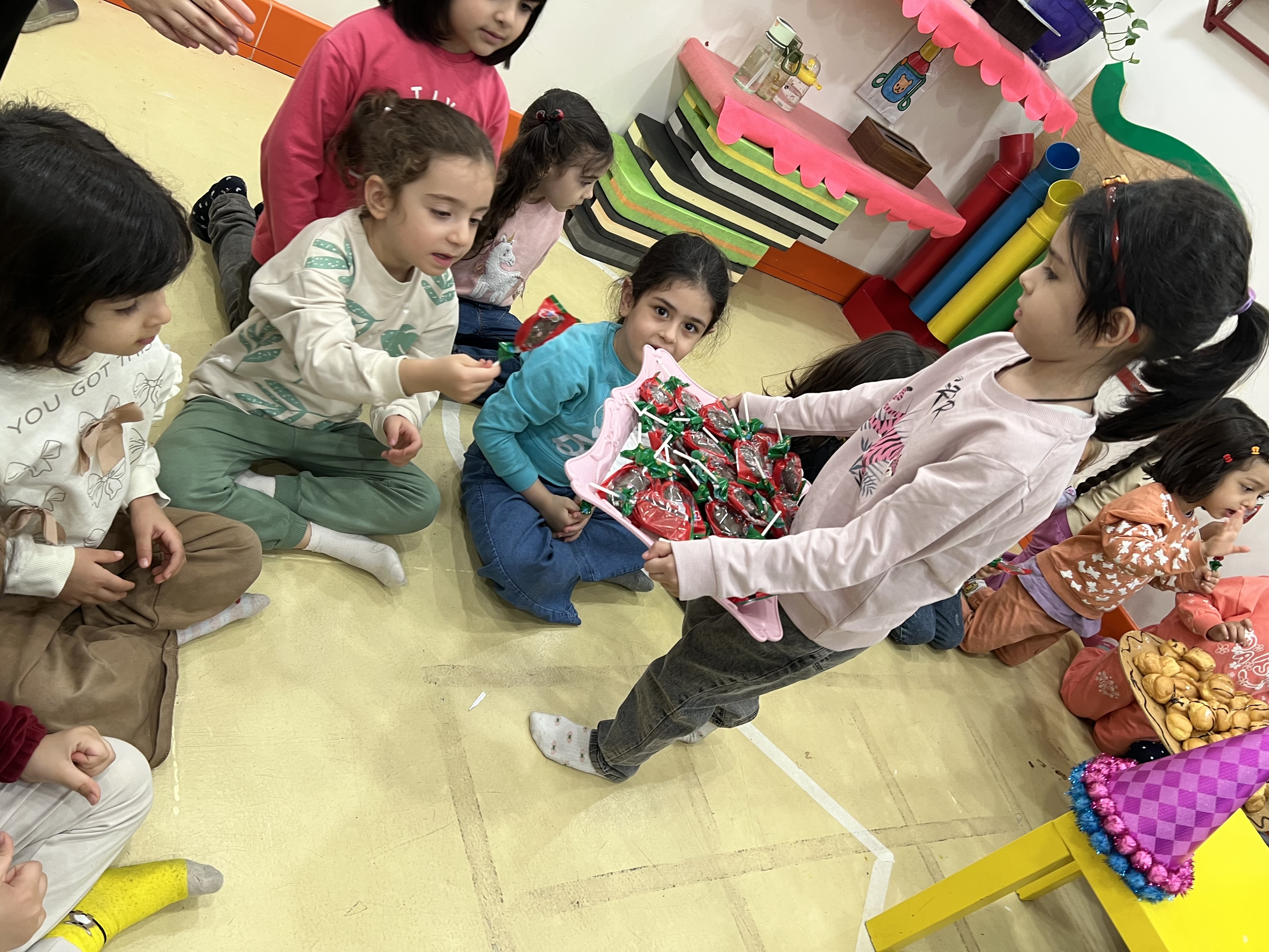 راستی امروز تولد یکی از دوستهامون هم بود🤩🥳شیرینی خوردیم و بچه ها شکلات هدیه گرفتن🎊🎁🎉