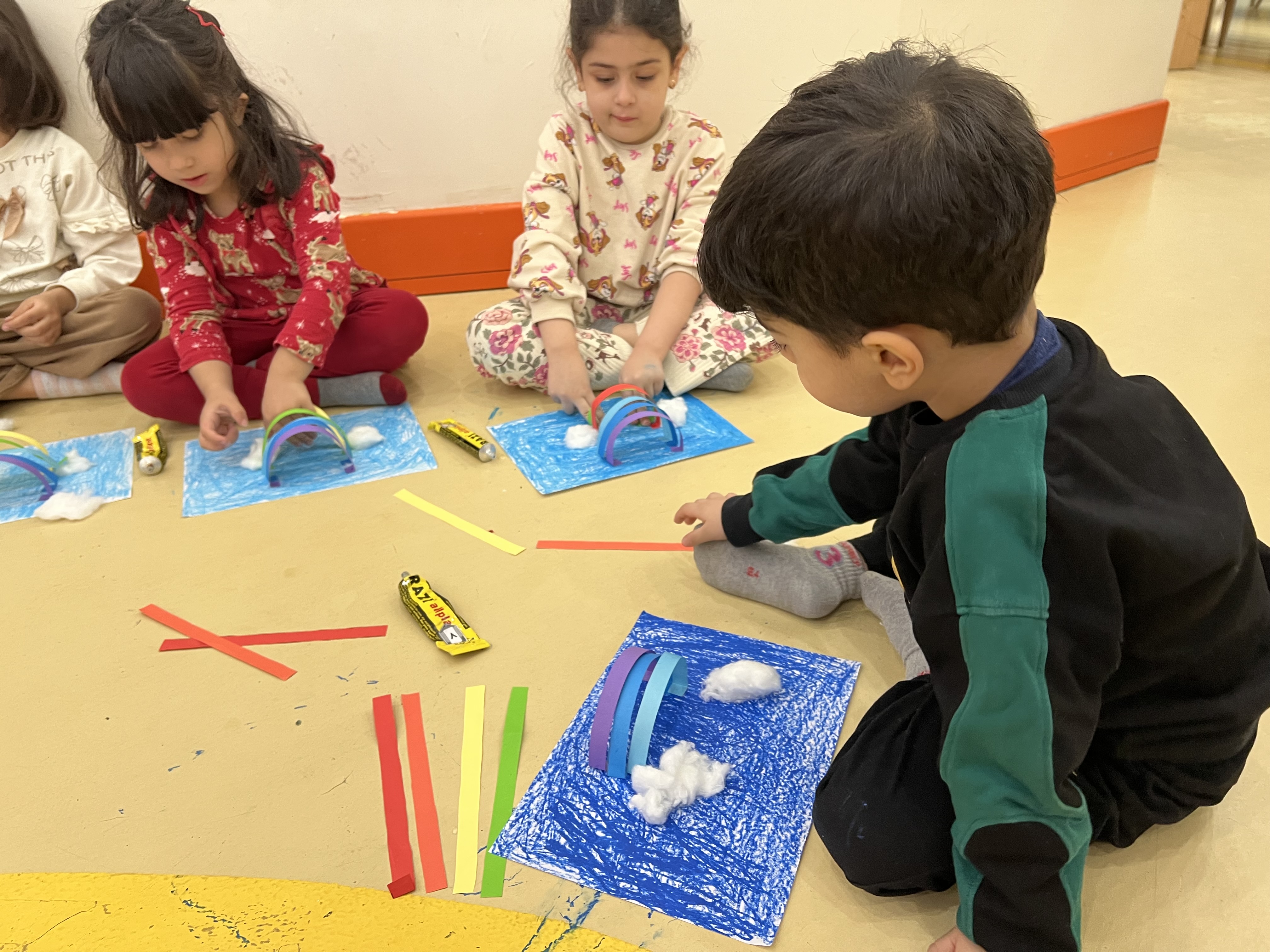 دست های خلاق، کاردستی خیلی جذاب تصویر آسمان و رنگین کمان سه بعدی رو داشتیم🌧️☀️🌈