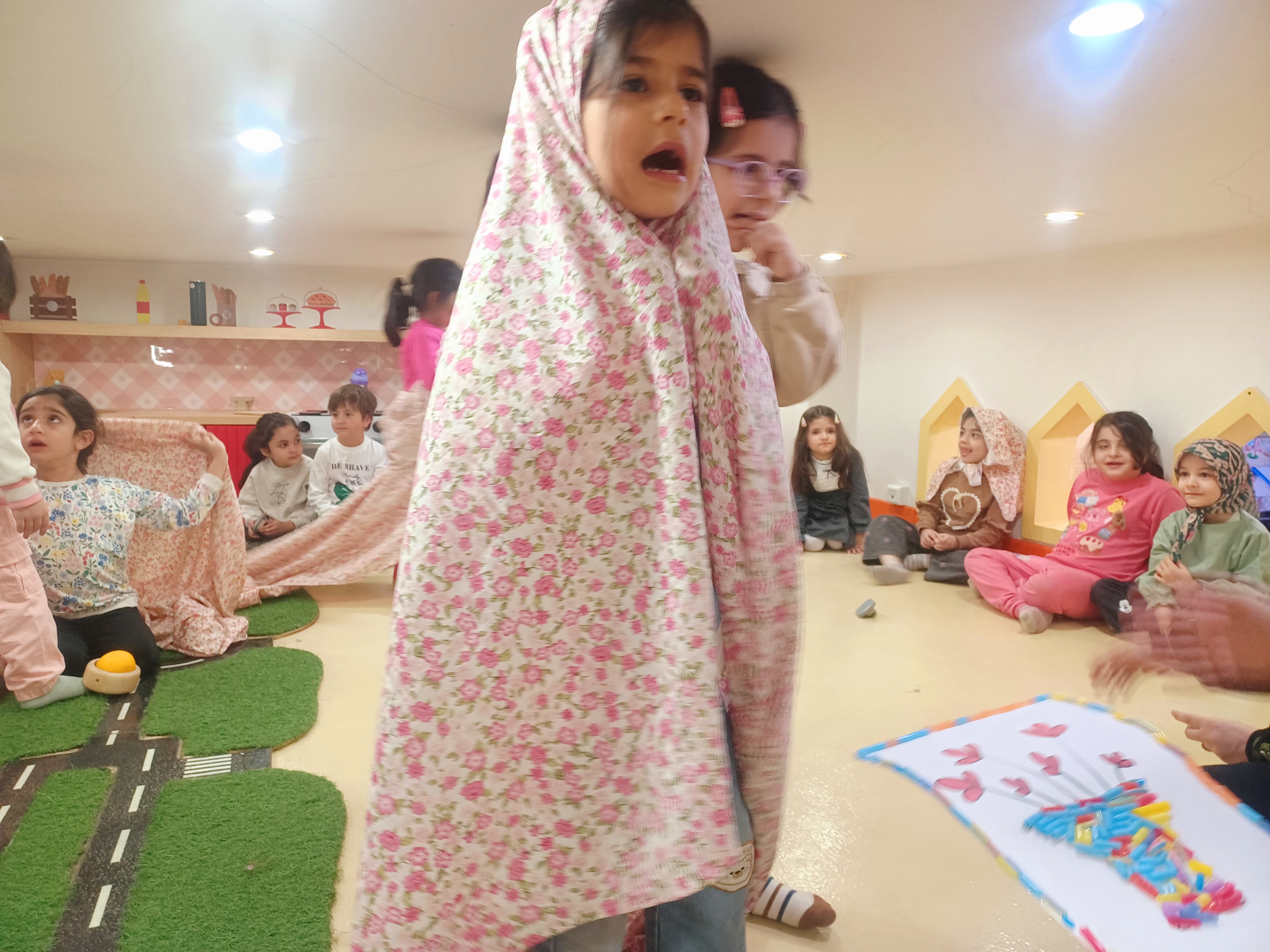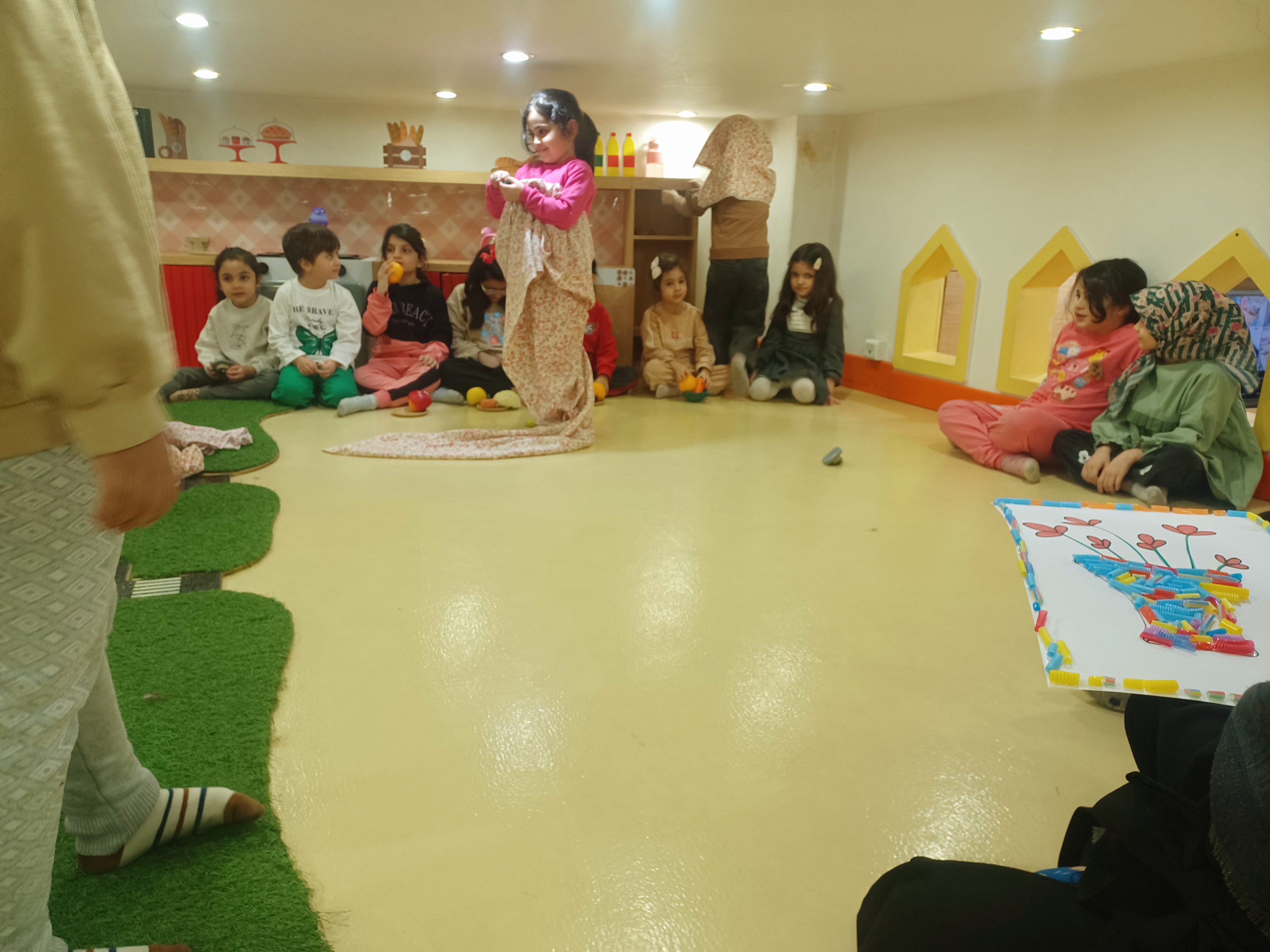 بچه ها به گروه های ۳_۴ نفری تقسیم میشوند و با هم گروهی با جنگا برج می سازند مدیتیشن خانه را نوازش میکنیم🌼 مدیتیشن کودکانه: خانهام را آرام نوازش میکنم بیا یک جای نرم و راحت بشینیم چشمها را بهآرامی ببندیم…نفس را آرام داخل ببریم…و آهسته بیرون بدهیم…حالا همهچیز آرام میشود.تصور کن خانهات مثل یک دوست مهربان کنار تو ایستاده.دوستی که همیشه تو را میپذیرد…تو را گرم نگه میدارد…و مثل یک آغوش بزرگ، از تو مراقبت میکند.حالا دستت را آرام روی قلبت بگذار…حس کن یک نور گرم و طلایی در قلبت روشن میشود.این نور نرم است…مهربان است…و دوست دارد همهجا را آرام کند.حالا این نور را به خانه میفرستیم.اول به دیوارها…بعد به سقف…به اتاقی که تو در آن بازی میکنی…به اتاق خوابت…به آشپزخانهای که بوی خوش غذا در آن میپیچد…نور تو همهجا پخش میشود و خانه را نوازش میکند.خانه با این نور آرام میشود…میدرخشد…و از تو تشکر میکند.حالا خانه آرام، لبخند میزند و میگوید:«من همیشه مراقب تو هستم.ممنون که مهربانیات را با من تقسیم کردی.»
