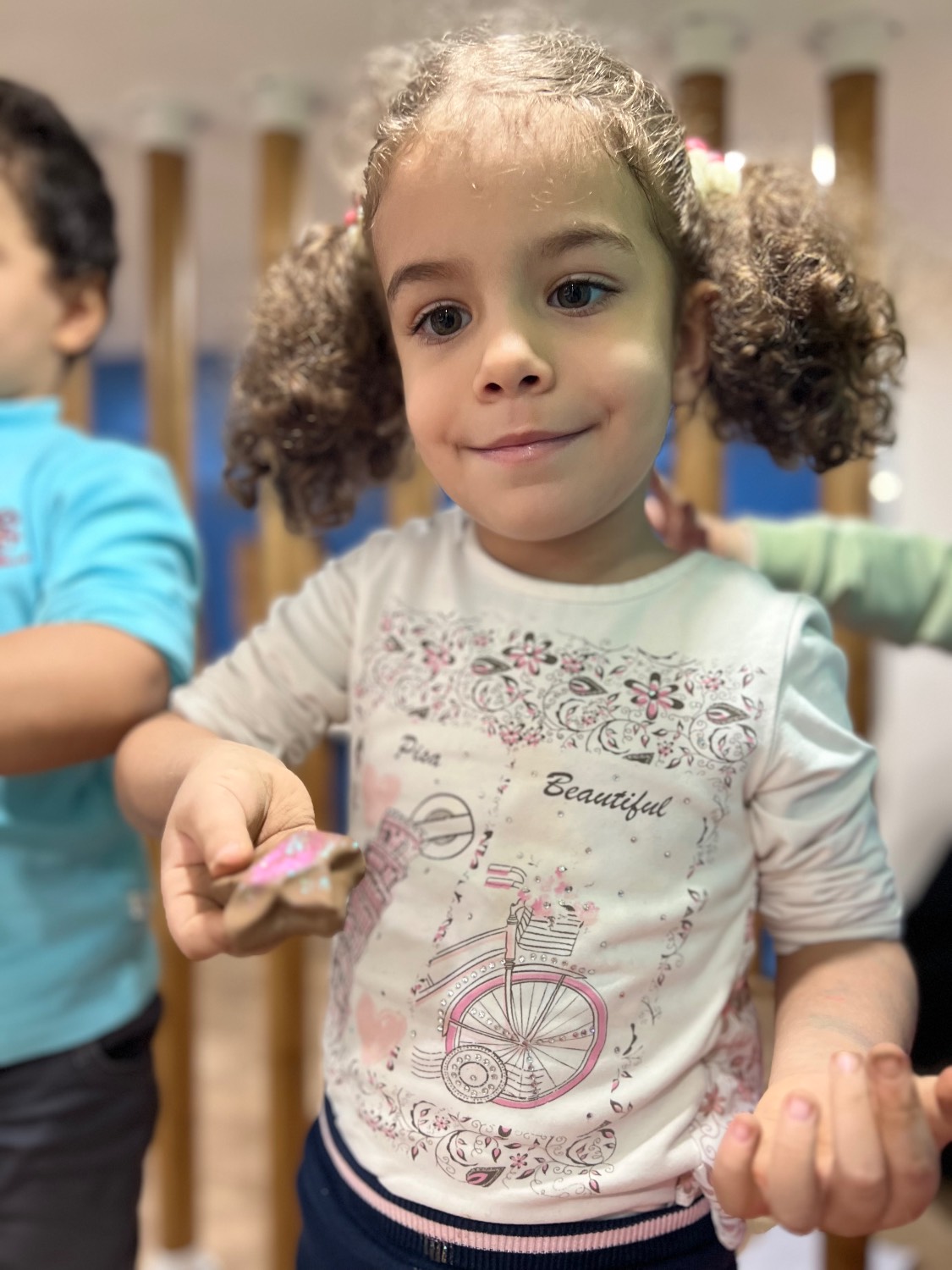 امروز بعد از برنامه صبحگاه و میل کردن صبحانه ی پروتئینی(تخم مرغ آبپز) 🥚 با بچه های گلمون به کلاس رفتیم .