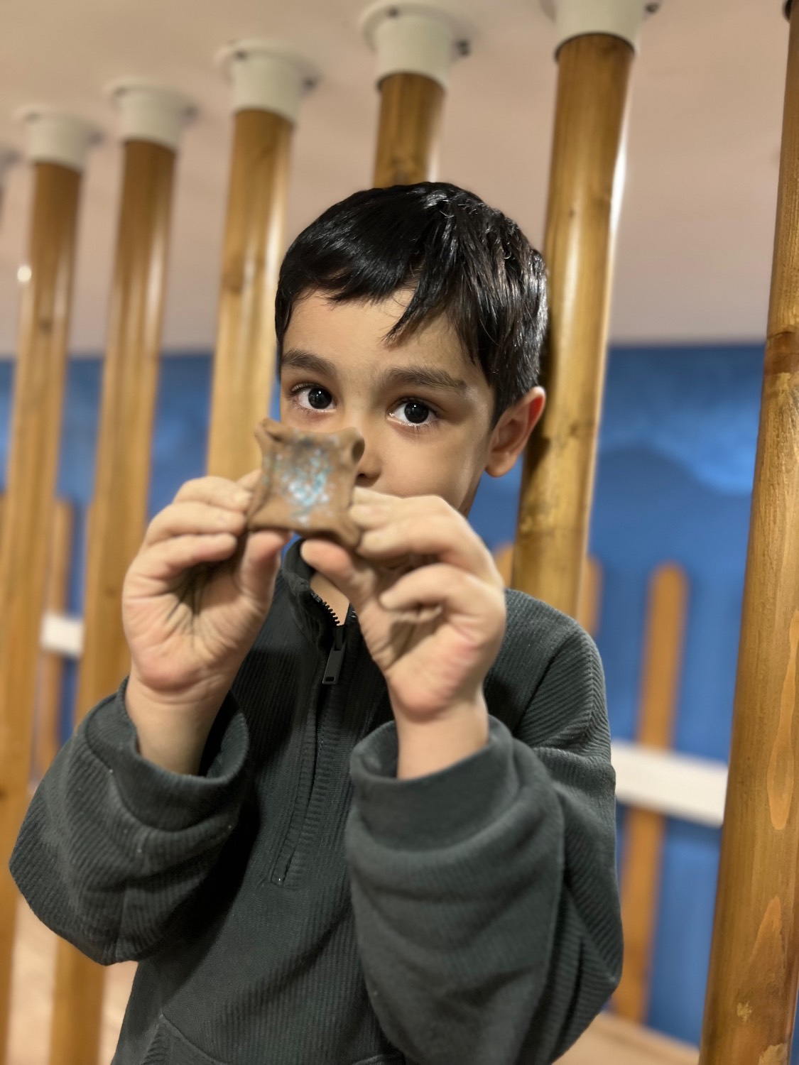 سفالگری : با بچه های گلمون شکل ستاره رو ساختیم و با اکلیل تزئین کردیم.
