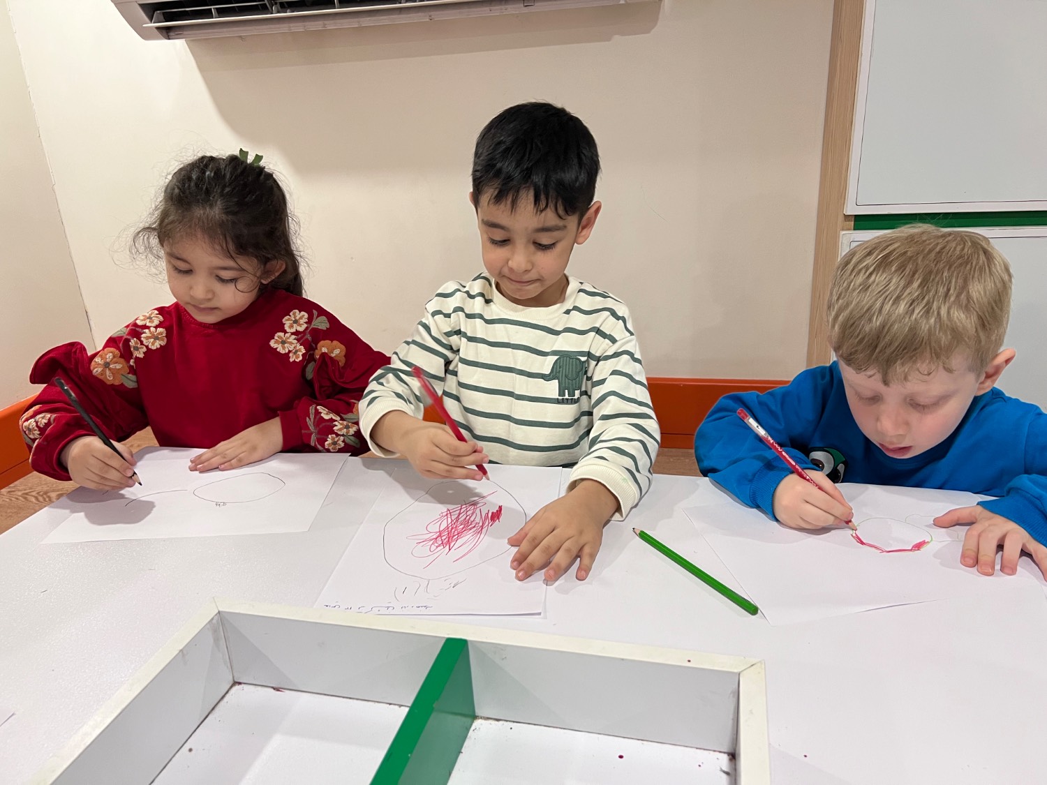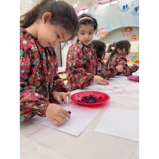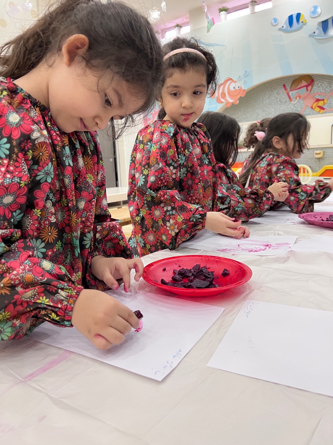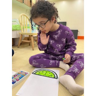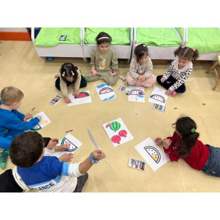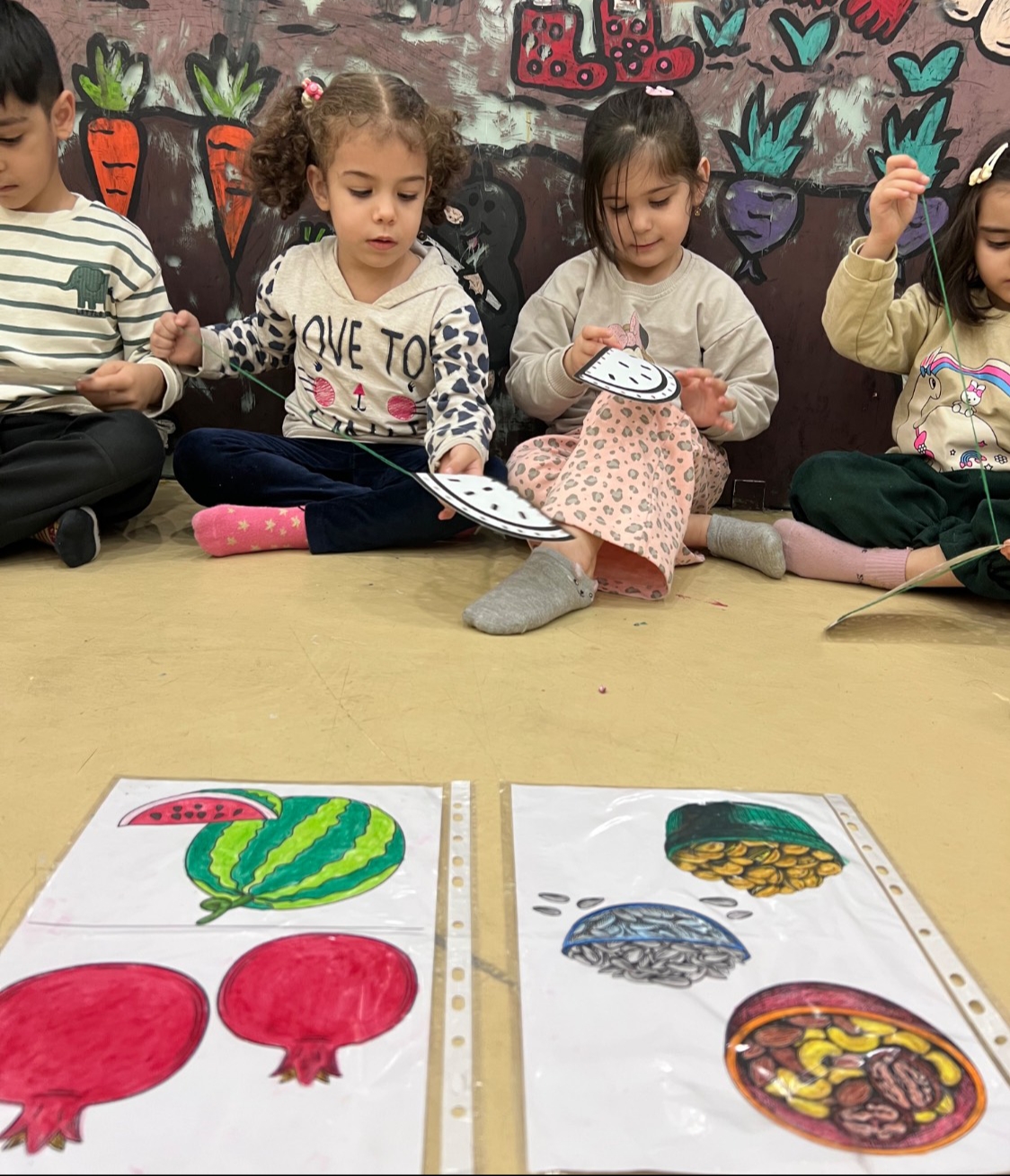 لذت نقاشی:کشیدن شکل هندوانه و انار و رنگ آمیزی آن ها.🍉
