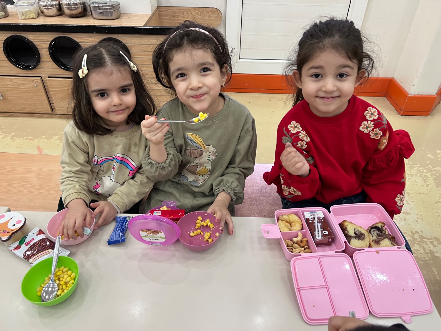 بعد از زنگ تفریح و شستن دست هاشون، نوبت میان وعده شد(ذرت)🌽😋