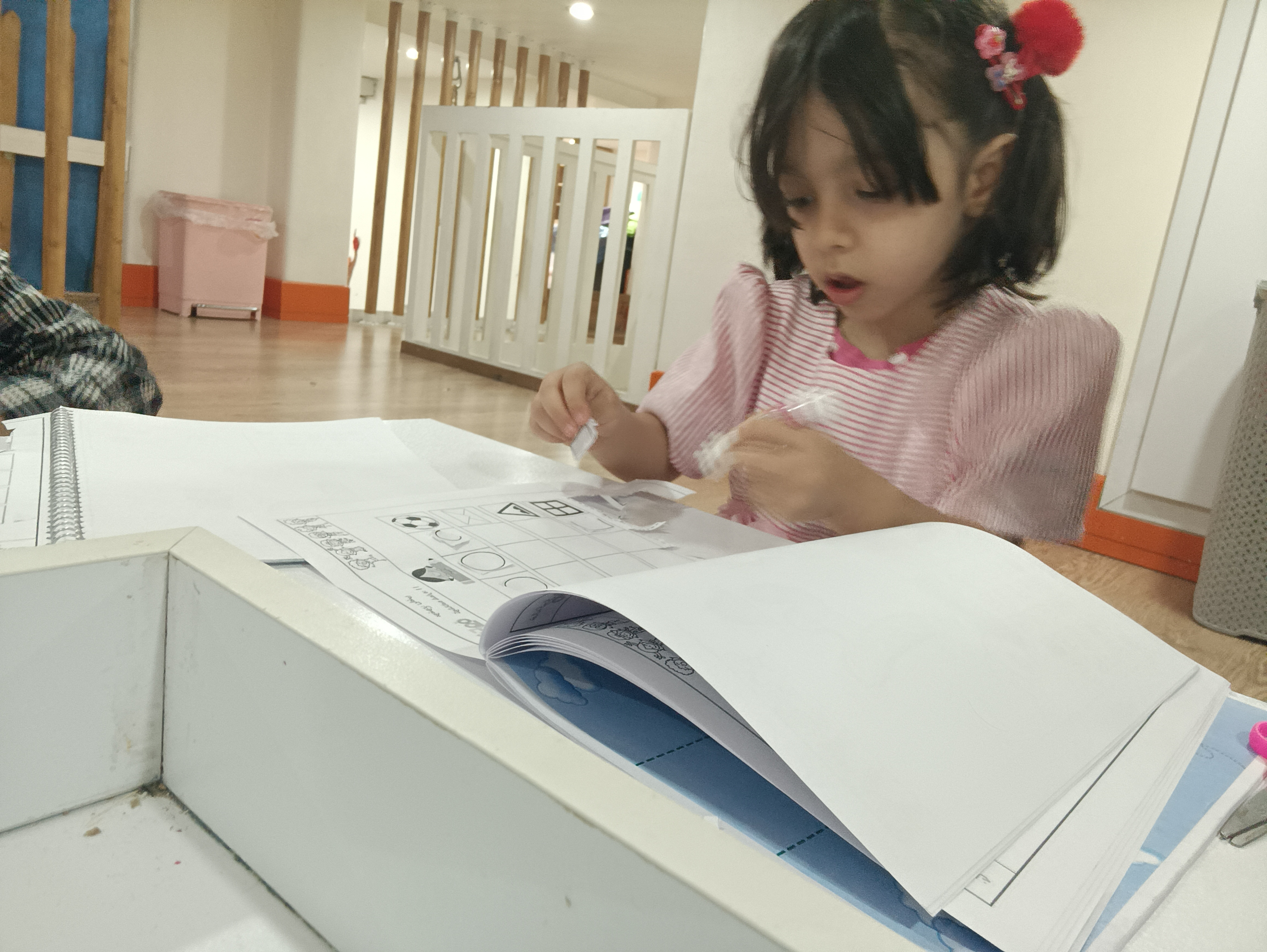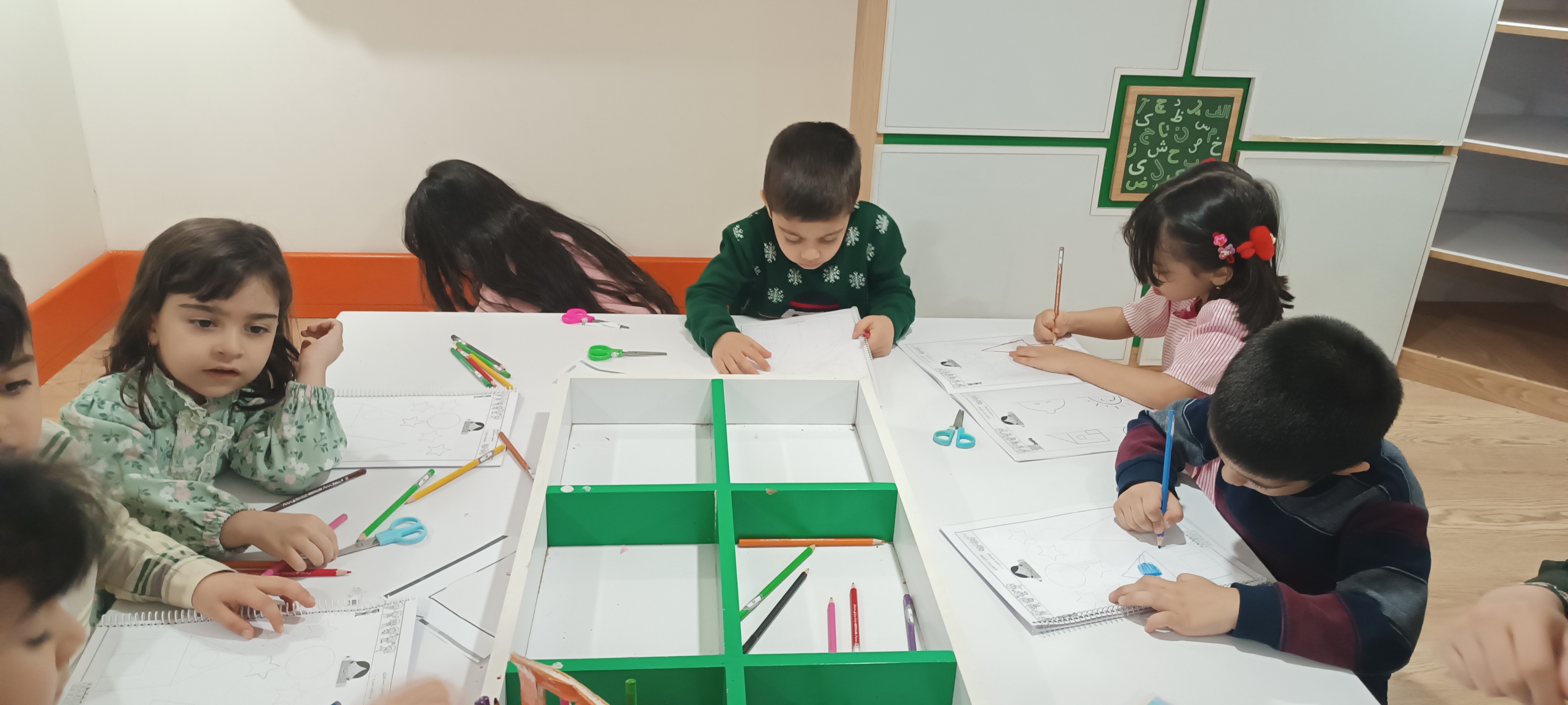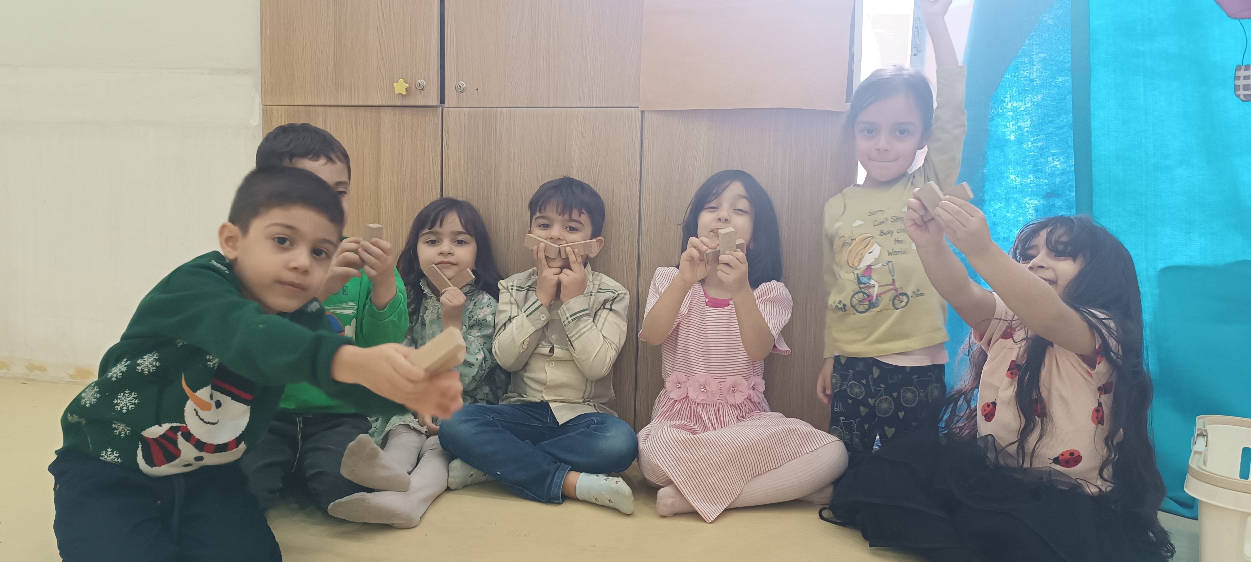 کلاس بعدی ما قصه کاغذ و قیچی بود که با استفاده از مربع هایی که بریدیم در یک برگه اچار میز یلدا ساختیم و آنرا رنگ و تزیین کردیم 🤩