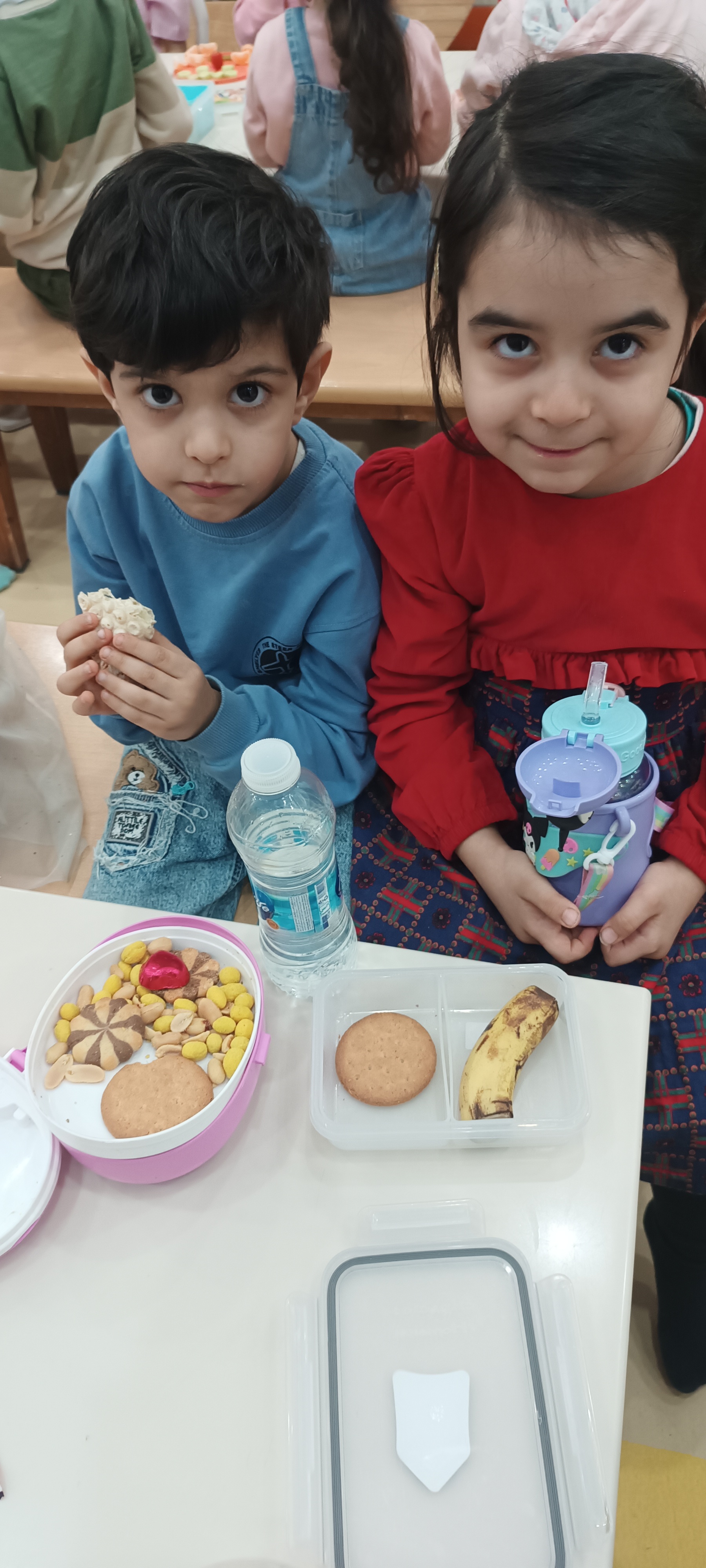 حالا نوبت میان وعده خوشم خوشمزه بود یعنی لقمه الویه و میان وعدههایی که مامان باباهای عزیز زحمت کشیدن 🍌🍎🌮
