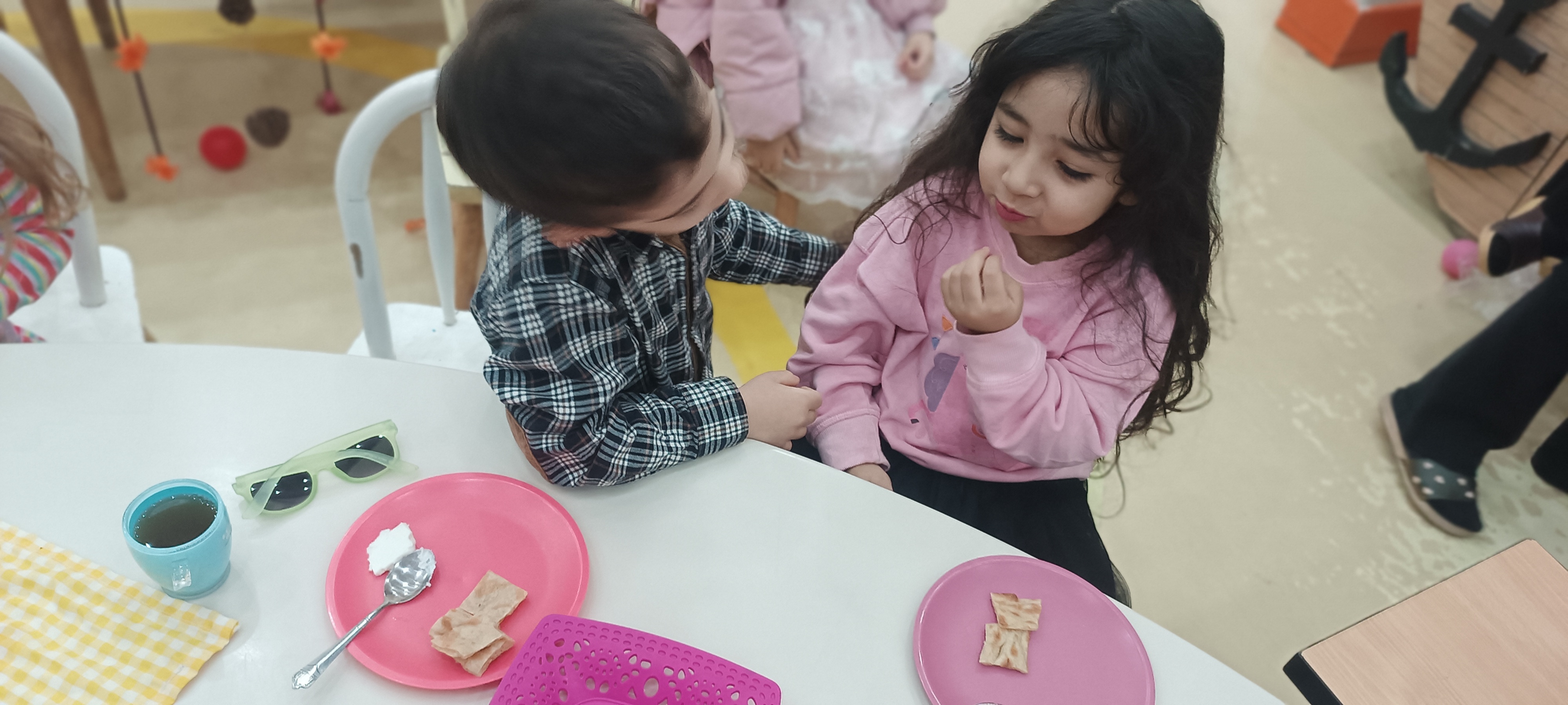 امروز ما طبق روال همیشگی با صبحگاههای جذ ابمون شروع شد که کلی شعر خوندیم قران خوندیم بعد رفتیم سراغ صبحانه خوشمزه یعنی پنیر و خیار و نان تازه با چایی. 🍞🫓🧀☕
