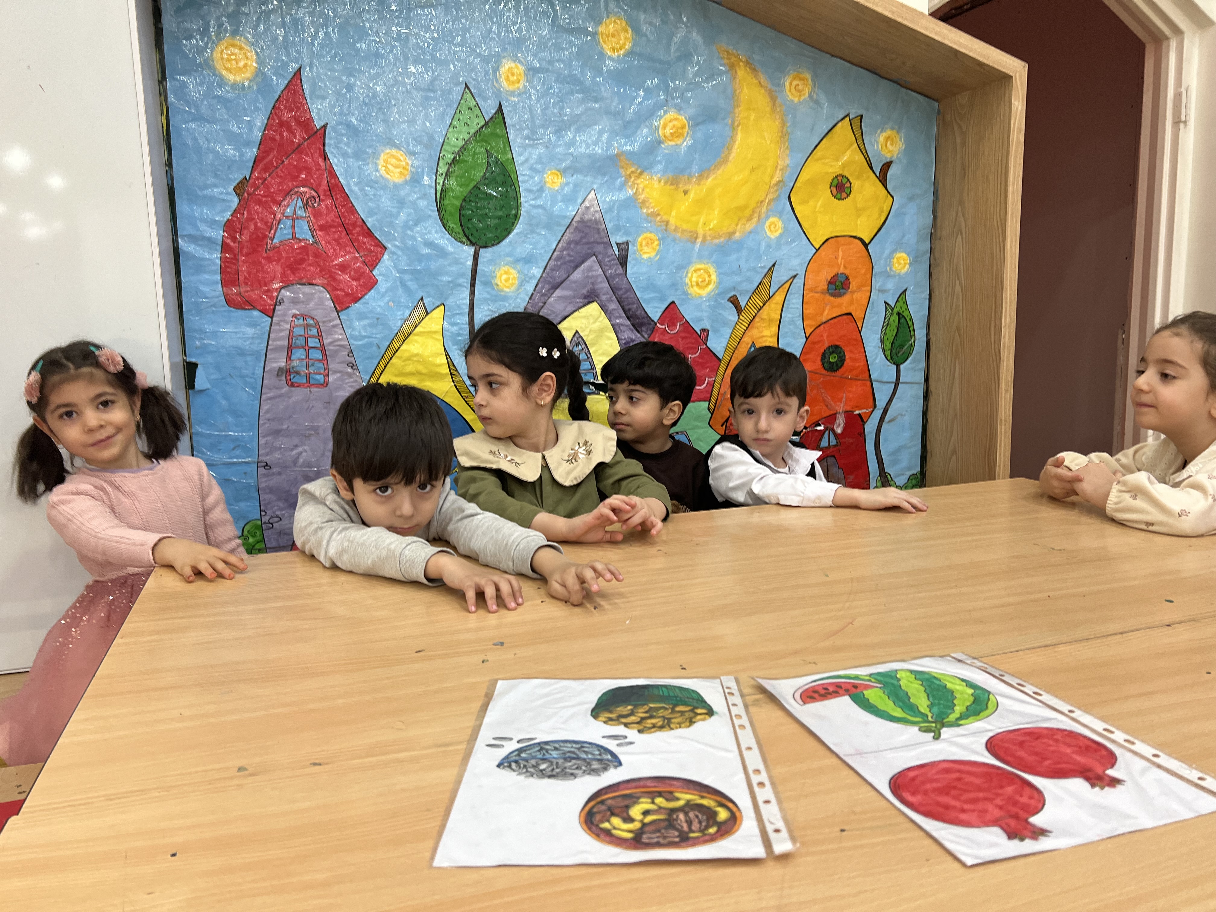 و در آخر با کاغذ و قیچی و مداد رنگی، میز یلدا رو ترسیم کردیم ✅