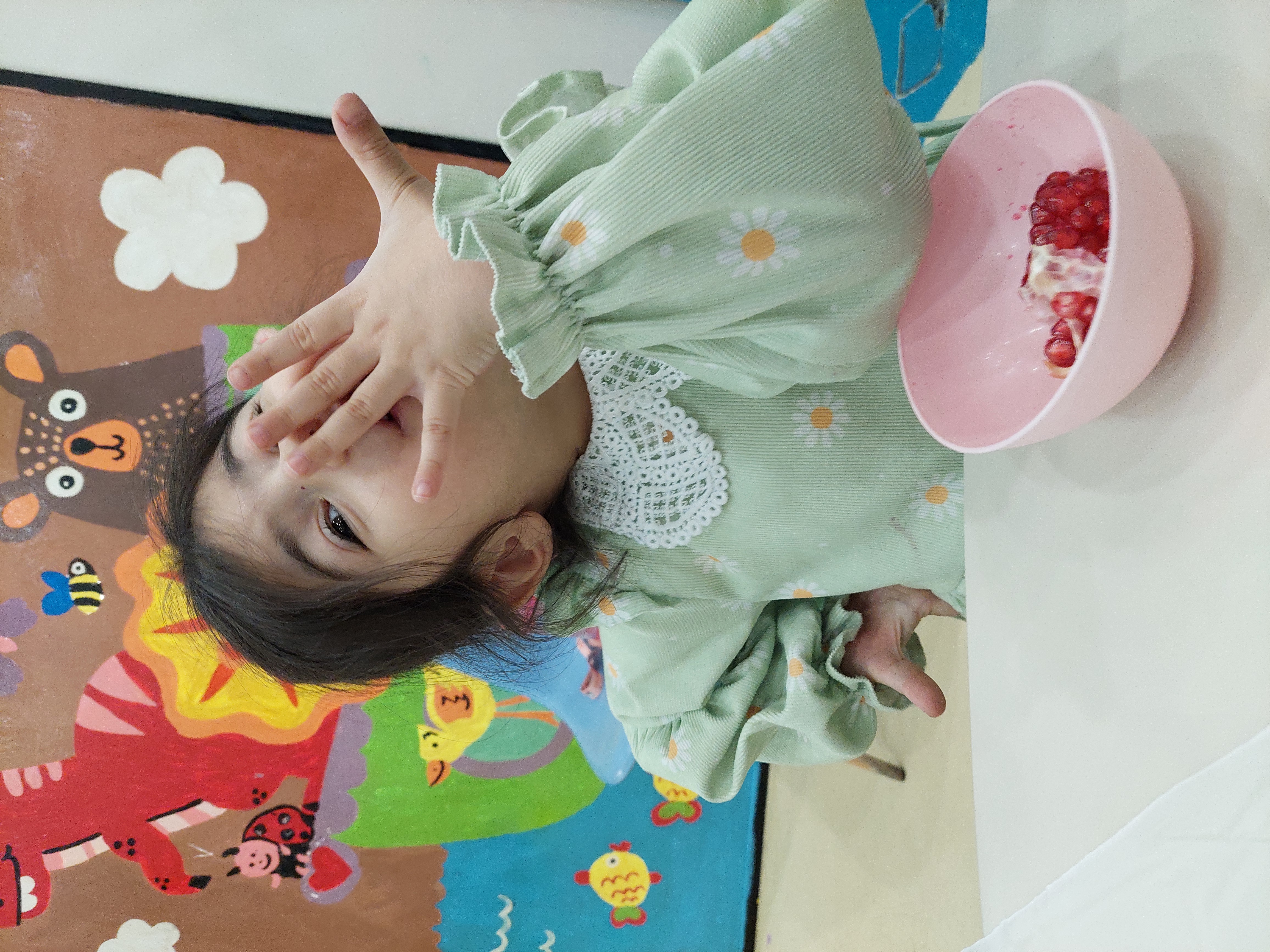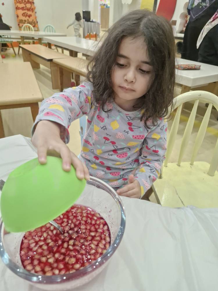 بعد موقع میان وعده خوشمزمون بود که ژله اناری بود که خودشون درست کرده بودند😍
