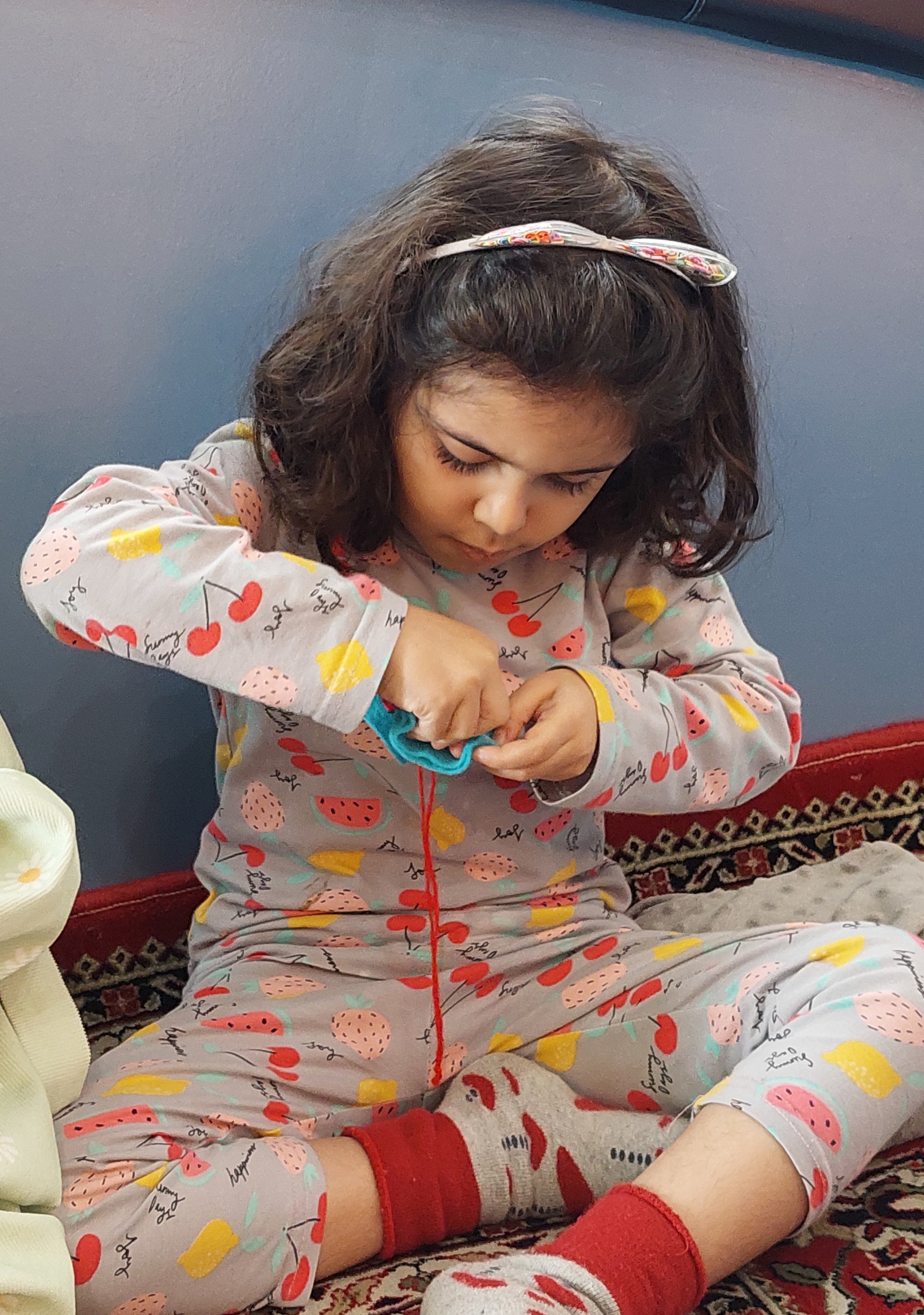 بعد فعالیت دوخت و دوز داشتیم و یک کیف دستمال کاغذی درست کردیم