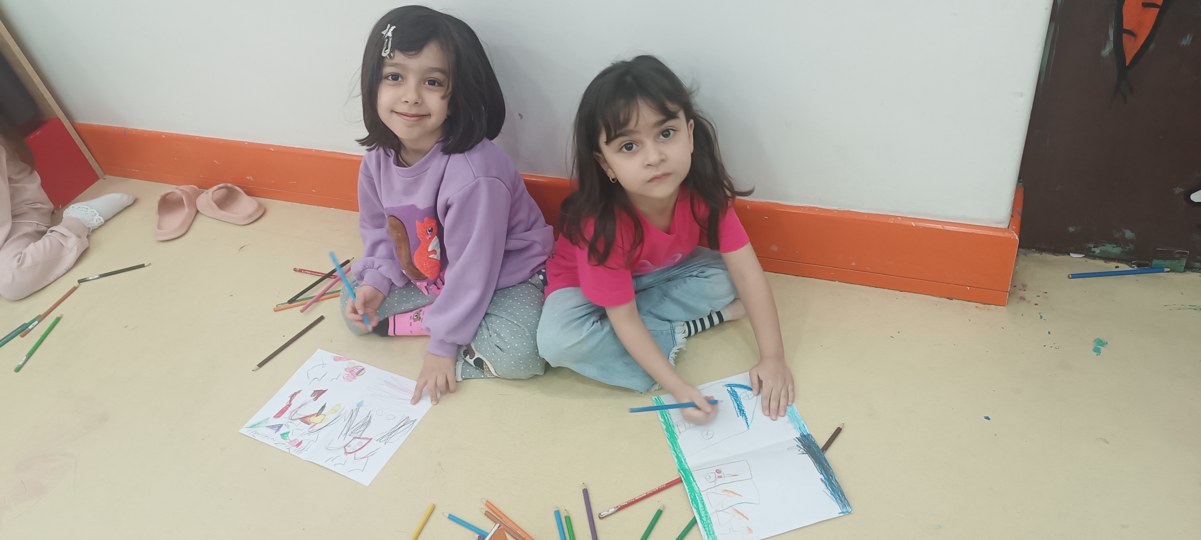 حالا نوبت کلاس نمایش خلاق بود طبق معمول خاله برای ما یک قصه جذاب تعریف کرد و بعداز ما خواست با کمک کاغذ و مداد رنگی یک کتاب کوچک درست کنیم📘