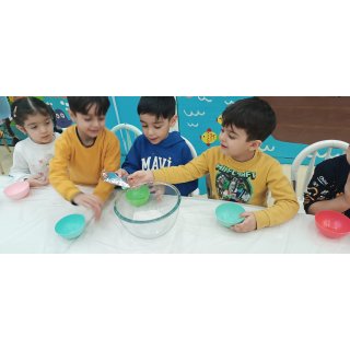 بعد هم رفتیم سر کلاس آشپزی و با کمک مربی کنار دوستامون ژله اناری درست کردیم تا اونها رو موقع میان وعده نوش جان کنیم.