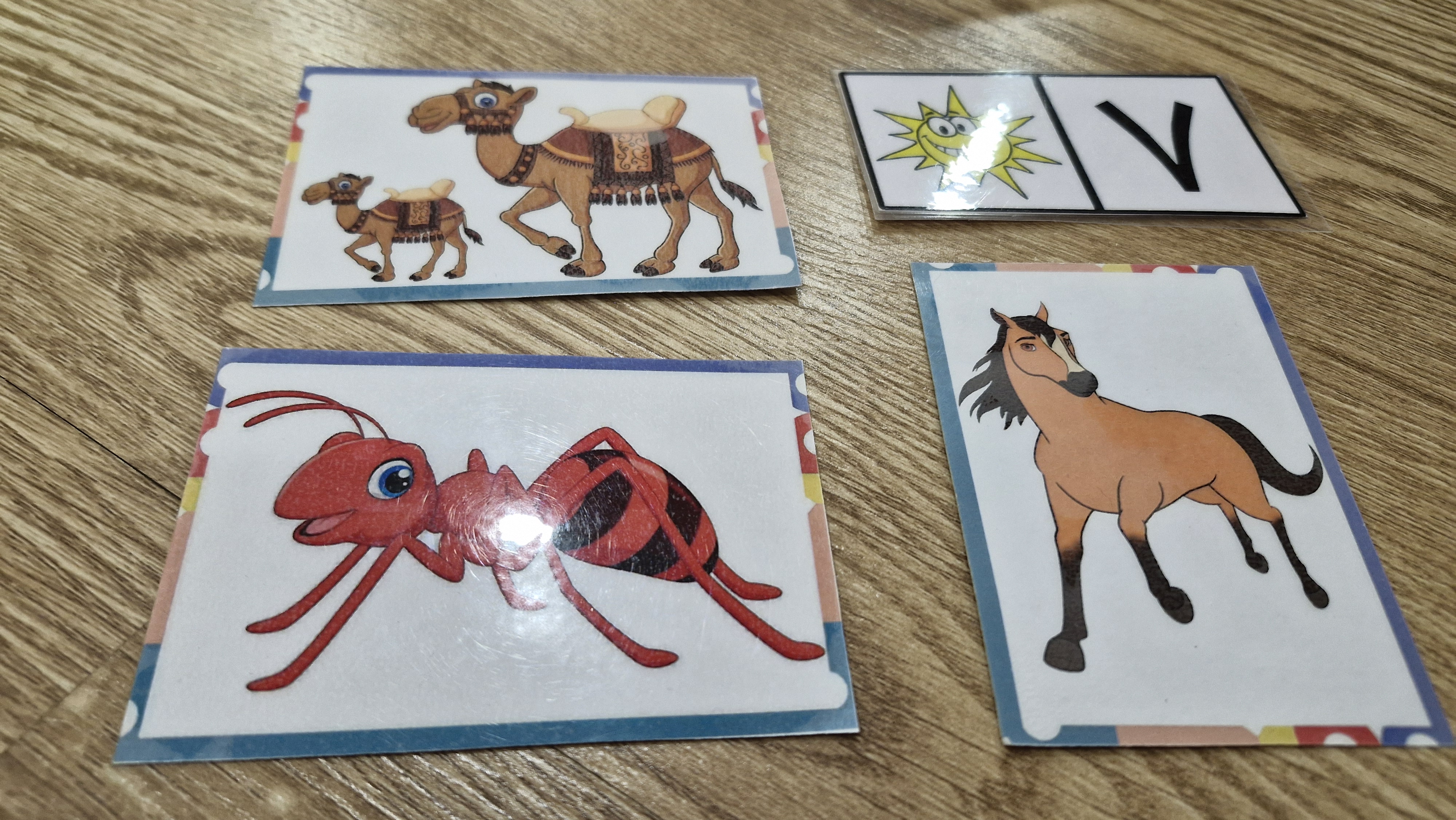 ۴ تا کارت مختلف در کنار هم گذاشته میشد و بچهها باید فکر میکردند که کدام متفاوت است از سایر کارتها و علت آن را میگفتند 🐴🐫🐅🦜