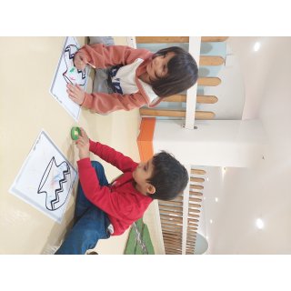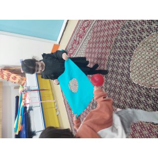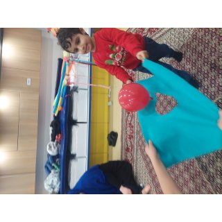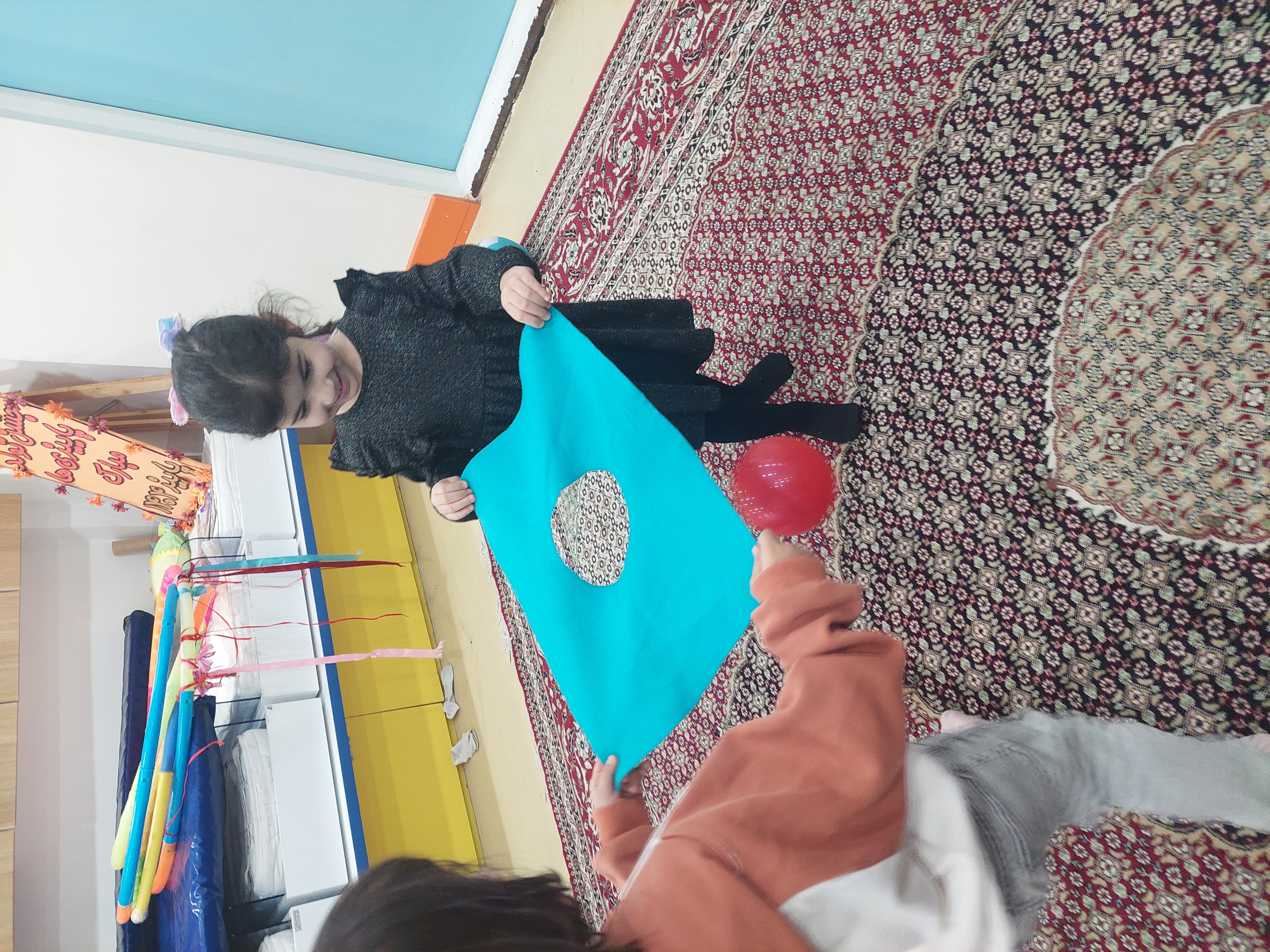 ابتدا رفتیم سراغ فعالیت بازی حرکتی به وسیله توپ و پارچه نمدی😍