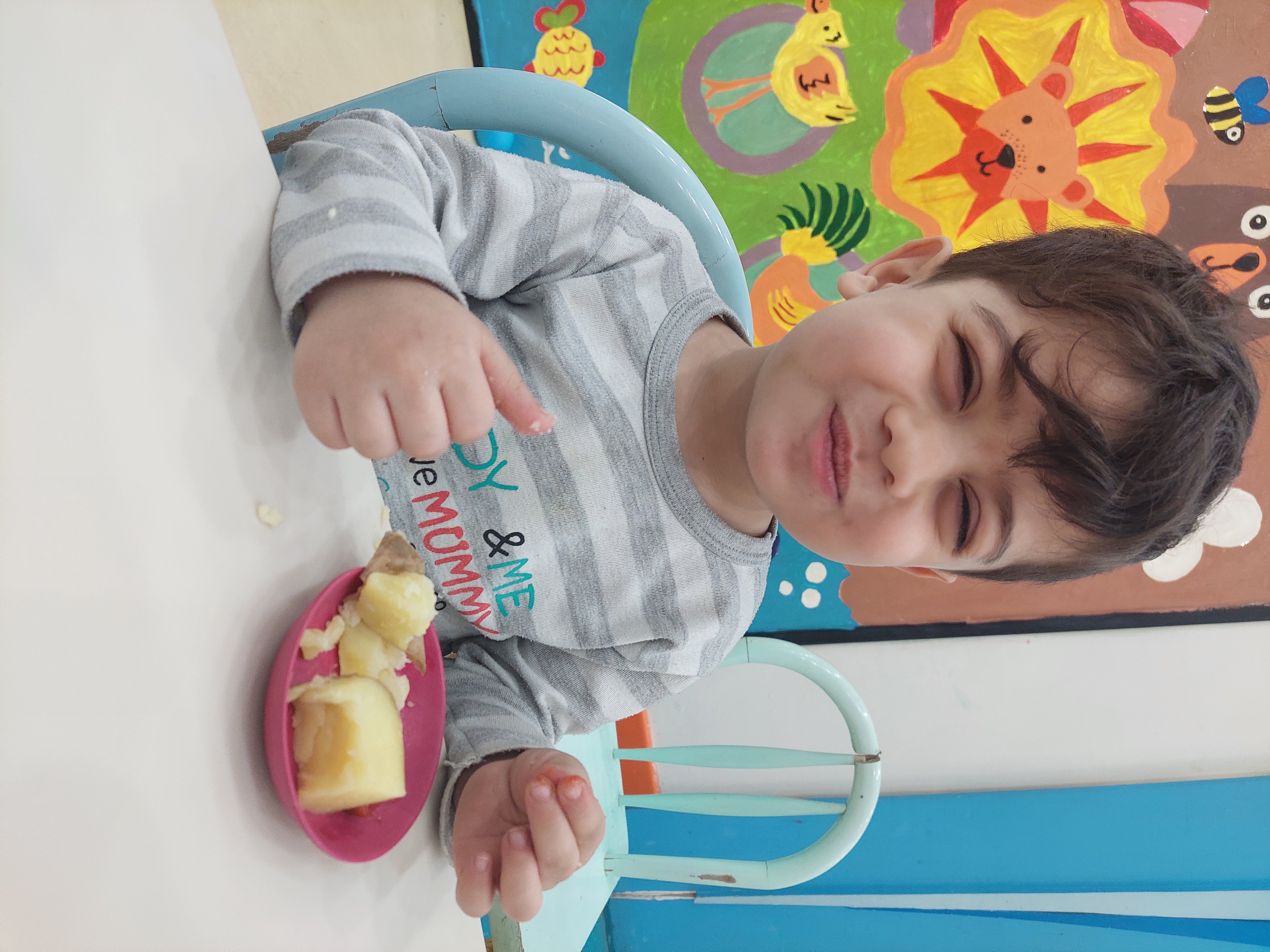 بعد نوبت رسید به میان وعده بچه ها که سیب زمینی با سس کچاپ بود😋