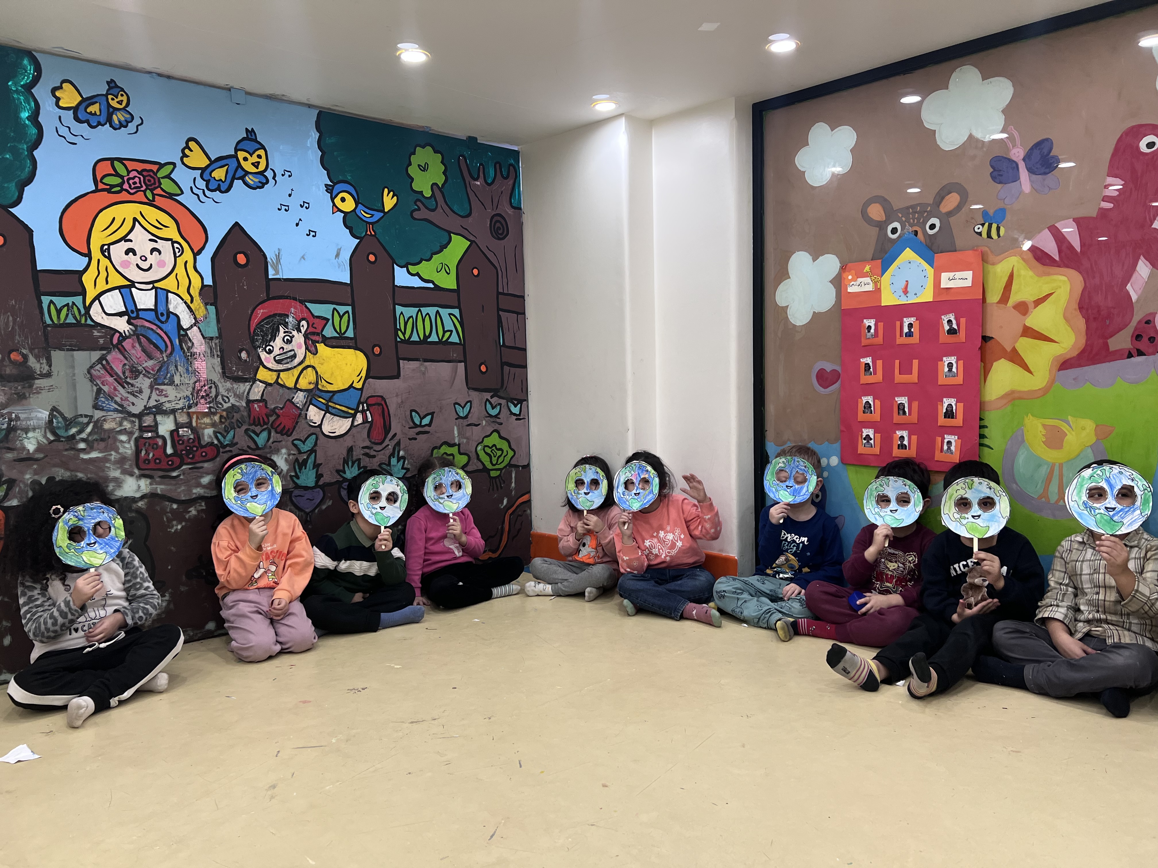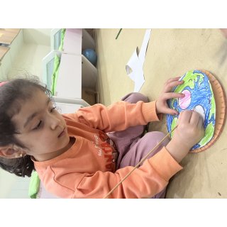 ایستگاه بعد دستان خلاق بود و با هم ماسک زمین رو درست کردیم😍