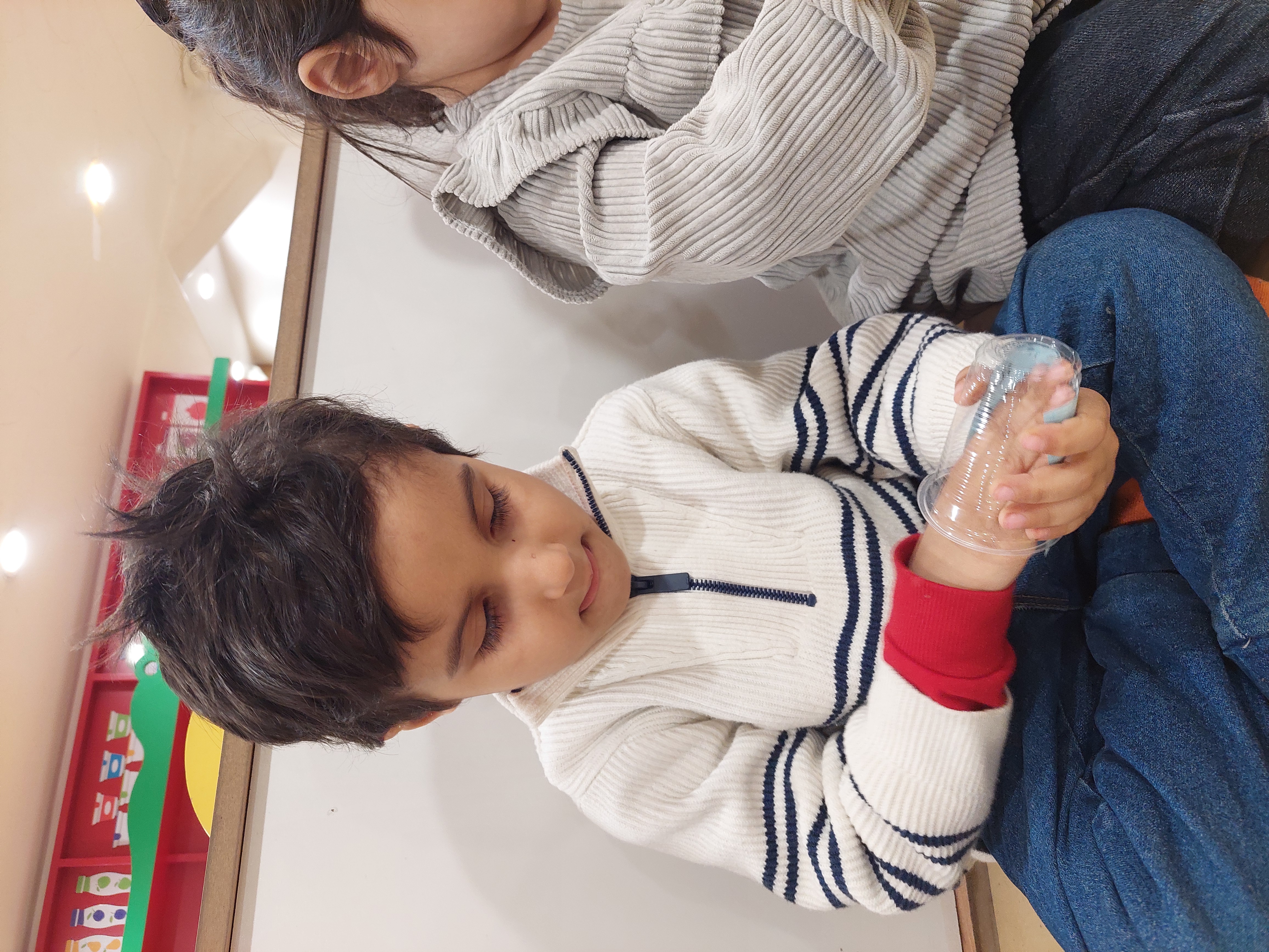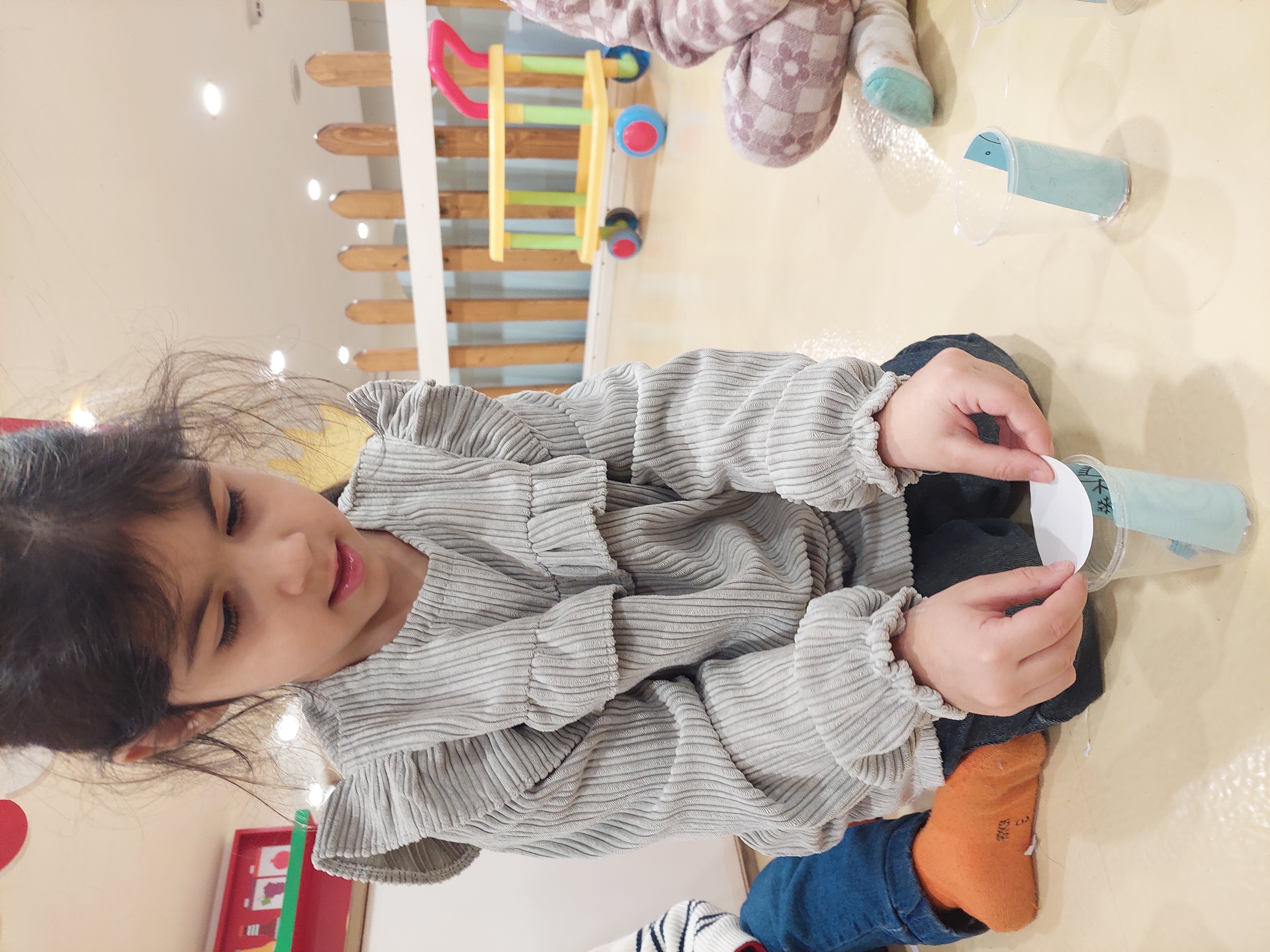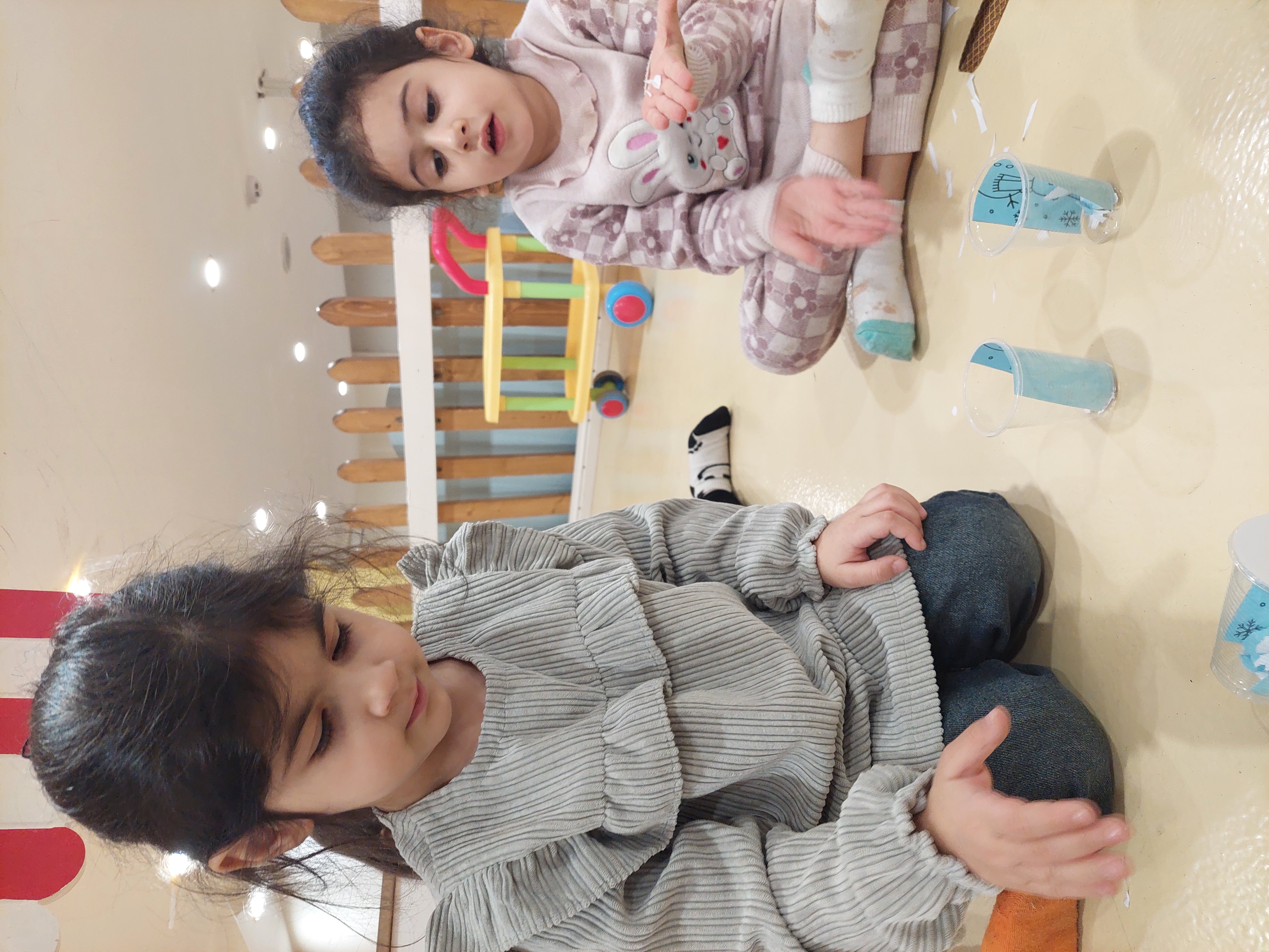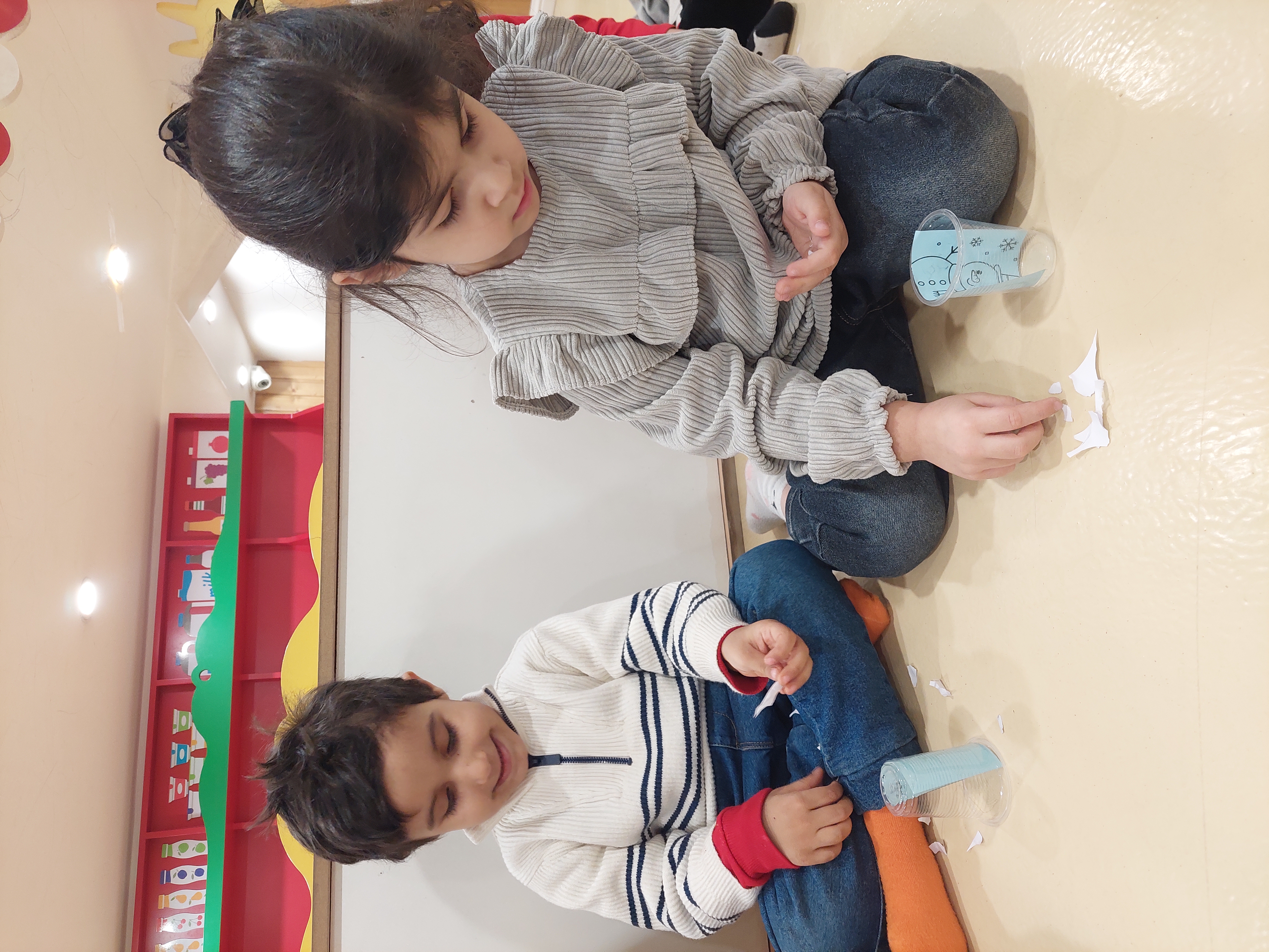 بعد فعالیت دستان خلاق من داشتیم که یک کاردستی گوی آدم برفی درست کردیم✂️