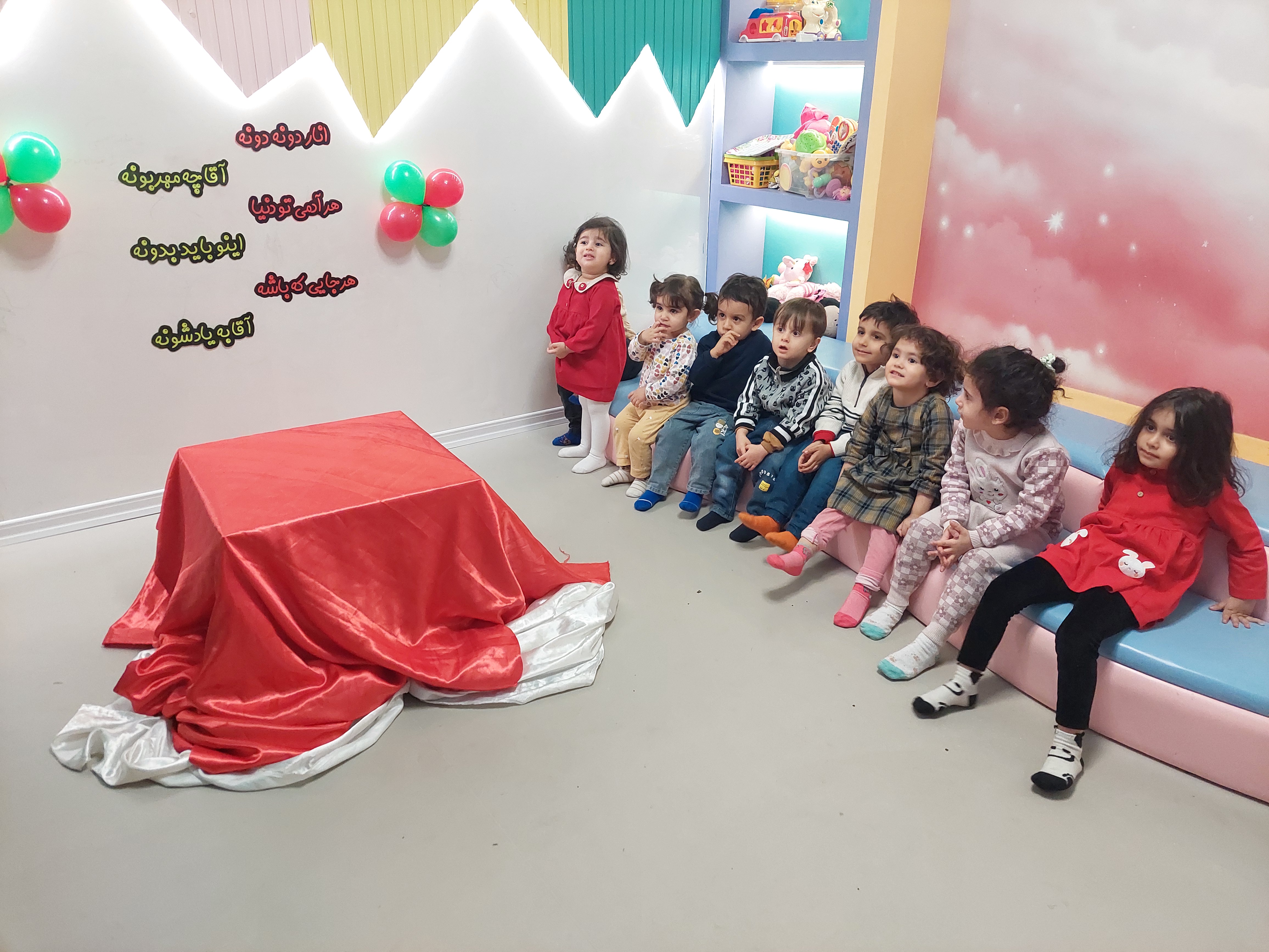 فعالیت بعدی کلاس آیه های قرآنی با خاله هانیه جان، امروز به مناسبت شب یلدا برای بچه ها زیر کرسی جذابمون قصه گفته شد🍉