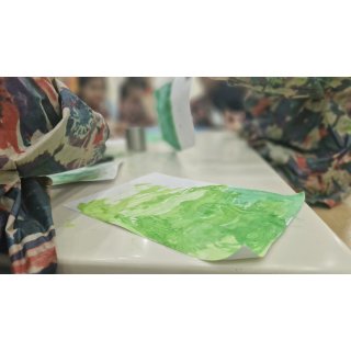 🌸 ایستگاه دوم یعنی مسی پلی بچهها کاغذ a۴ را به رنگ سبز یا آبی درآوردند بعد آن را مچاله کردند و هر برگه سبز و آبی به هم چسبانده شد و مثل کره زمین شد 🌏 ❤️