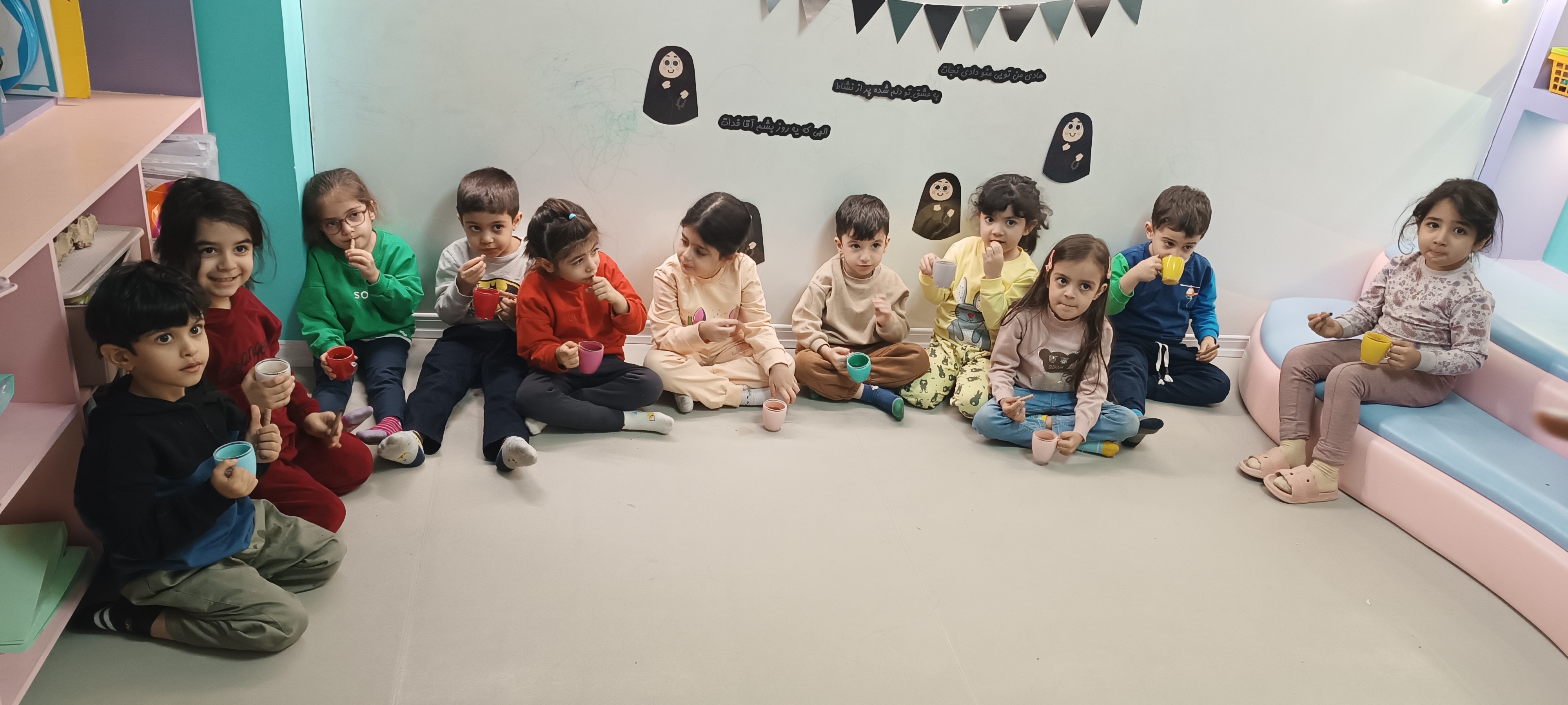 کلاس بعدی ما محاسن بود با خاله الهه یک ویژه برنامه به مناسبت شهادت امام هادی داشتیم و پایان برنامه چای و شیرینی هم خوردیم.