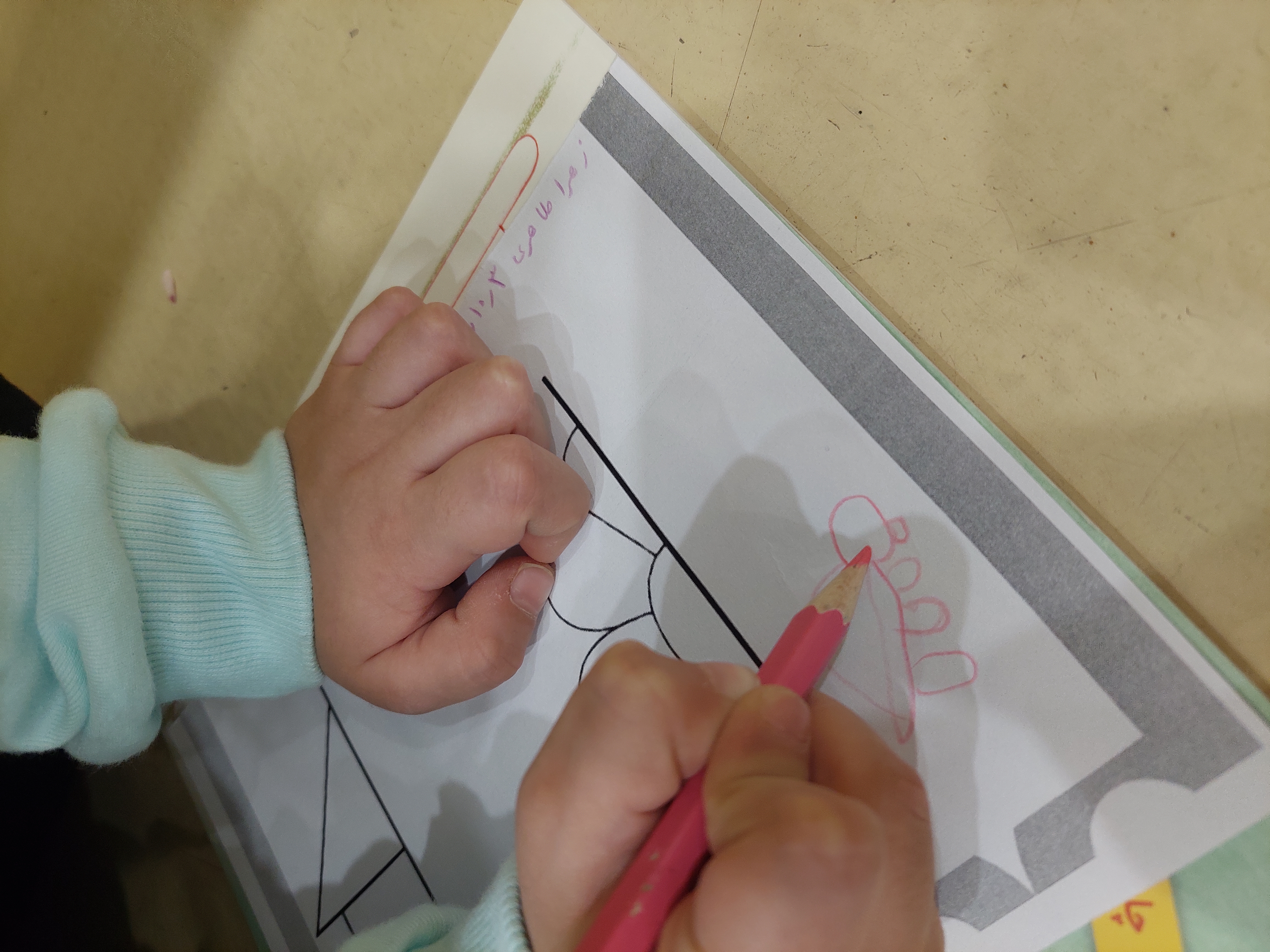 بعد نوبت رسید به فعالیت ذهن خلاق من، امروز طرح های نصفه رو کامل و بعد رنگ آمیزی کردیم