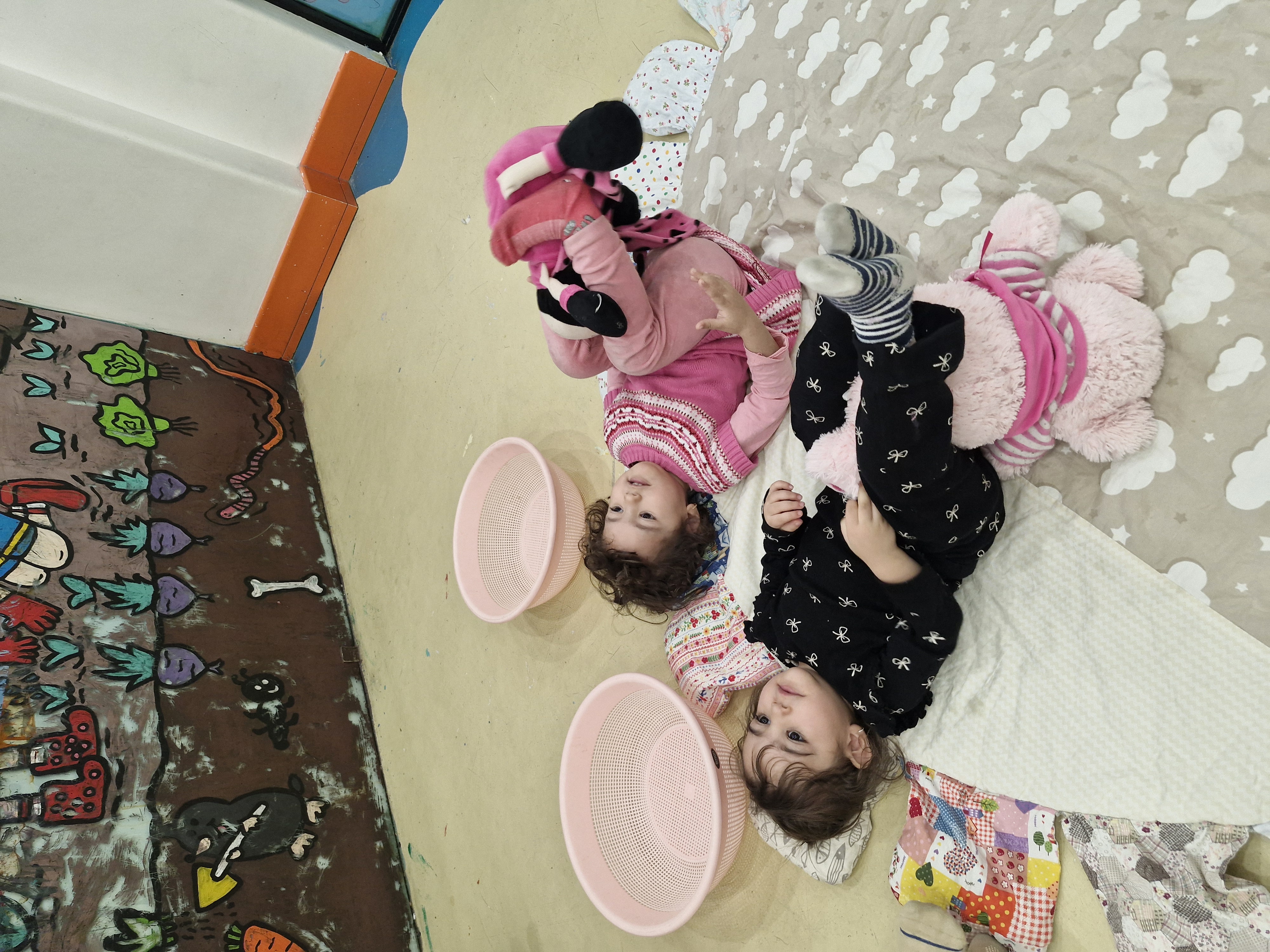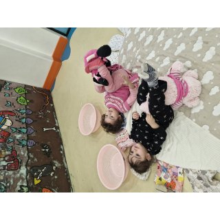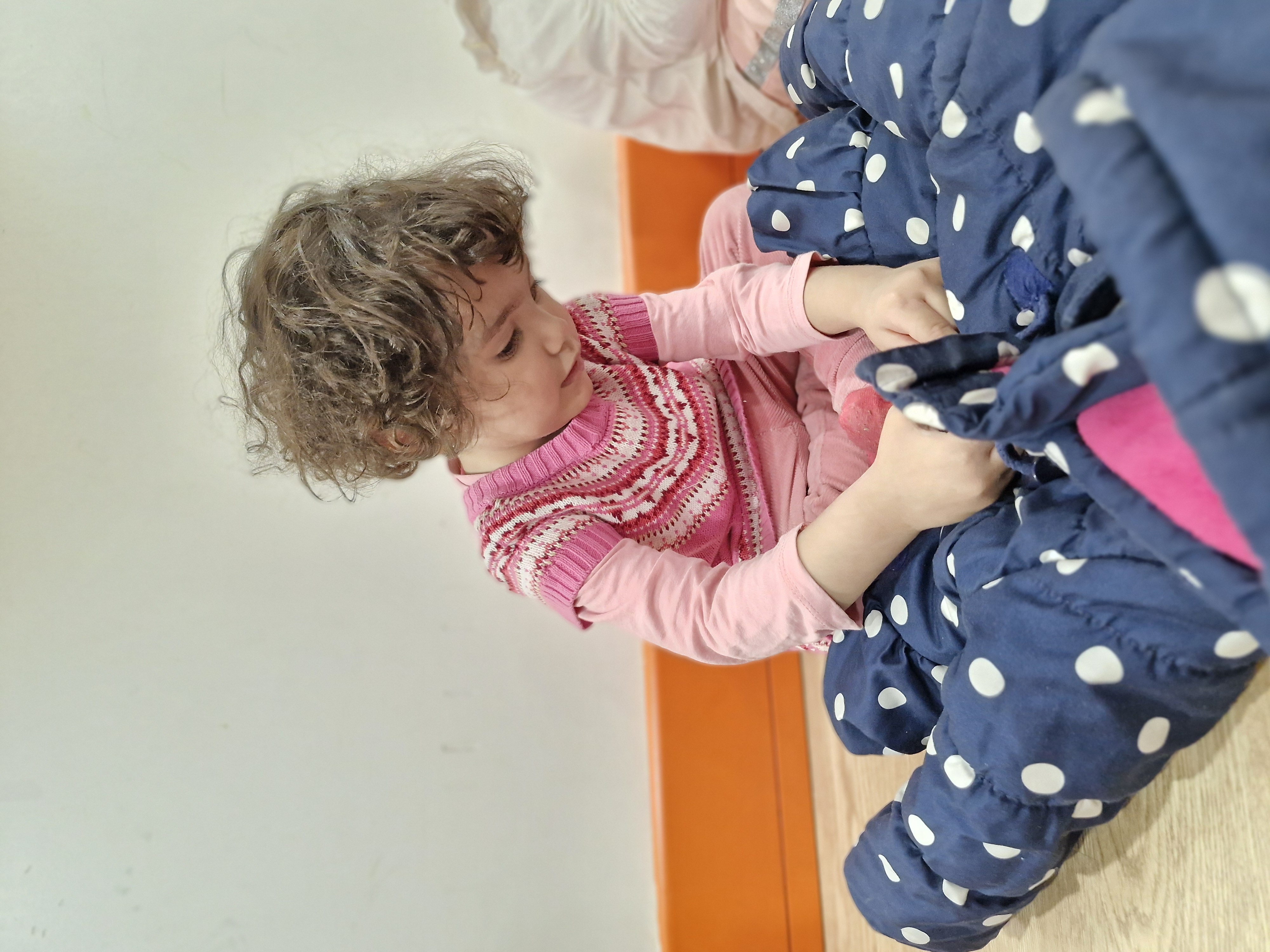 بعدش ورزش با خاله ها داشتیم پرتاب اشیا با پا خوابیده به عقب انجام دادیم.🦶🧸🦶