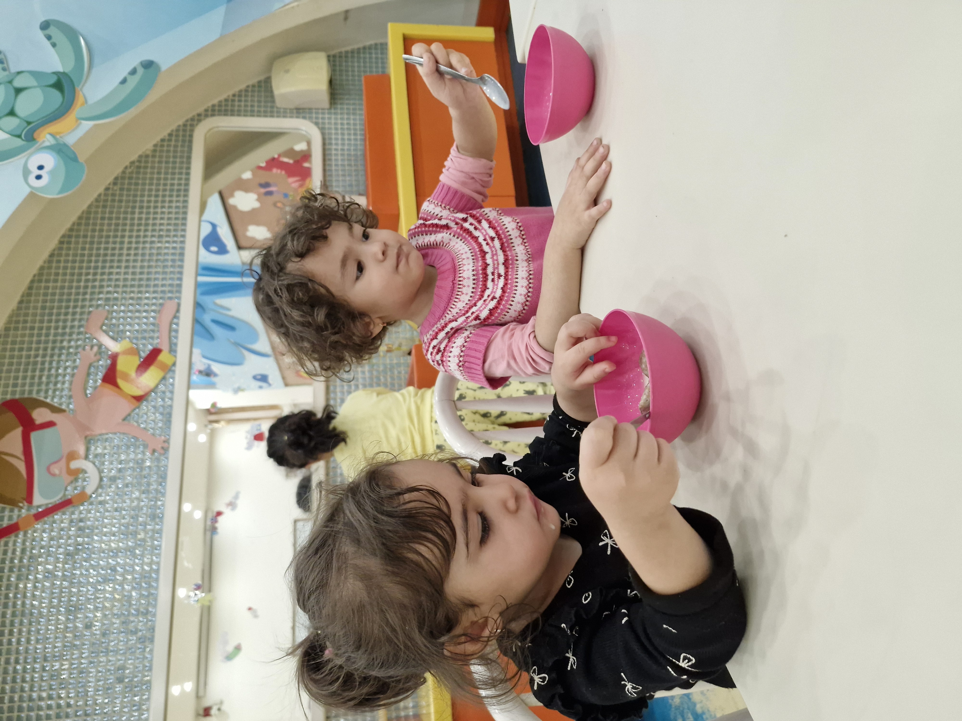 بعدش رفتیم میان وعده خوشمزه ( بالشتک و شیر) نوش جون کردیم.🥣🥛