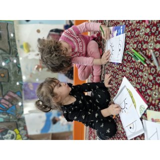بعدش ذهن خلاق من لذت نقاشی کامل کردن عکس نصفه را انجام دادیم و بعدش رنگ آمیزی کردیم.✨️🖌