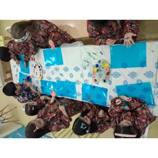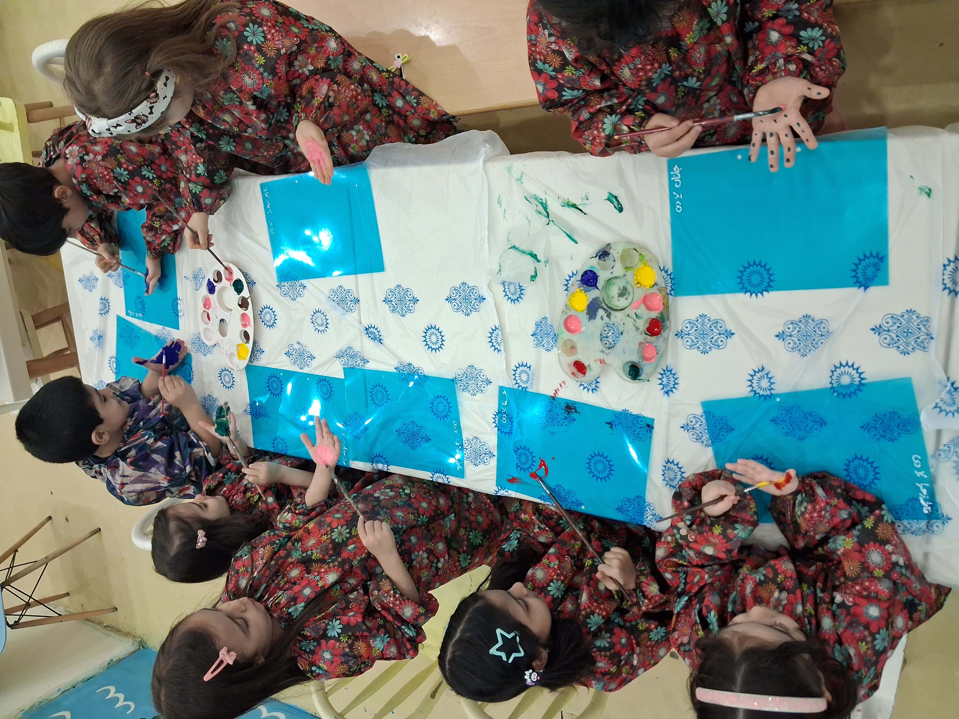 بچه ها دستاشون رو رنگی کردند و دستاشون رو روی طلق چاپ کردند😁