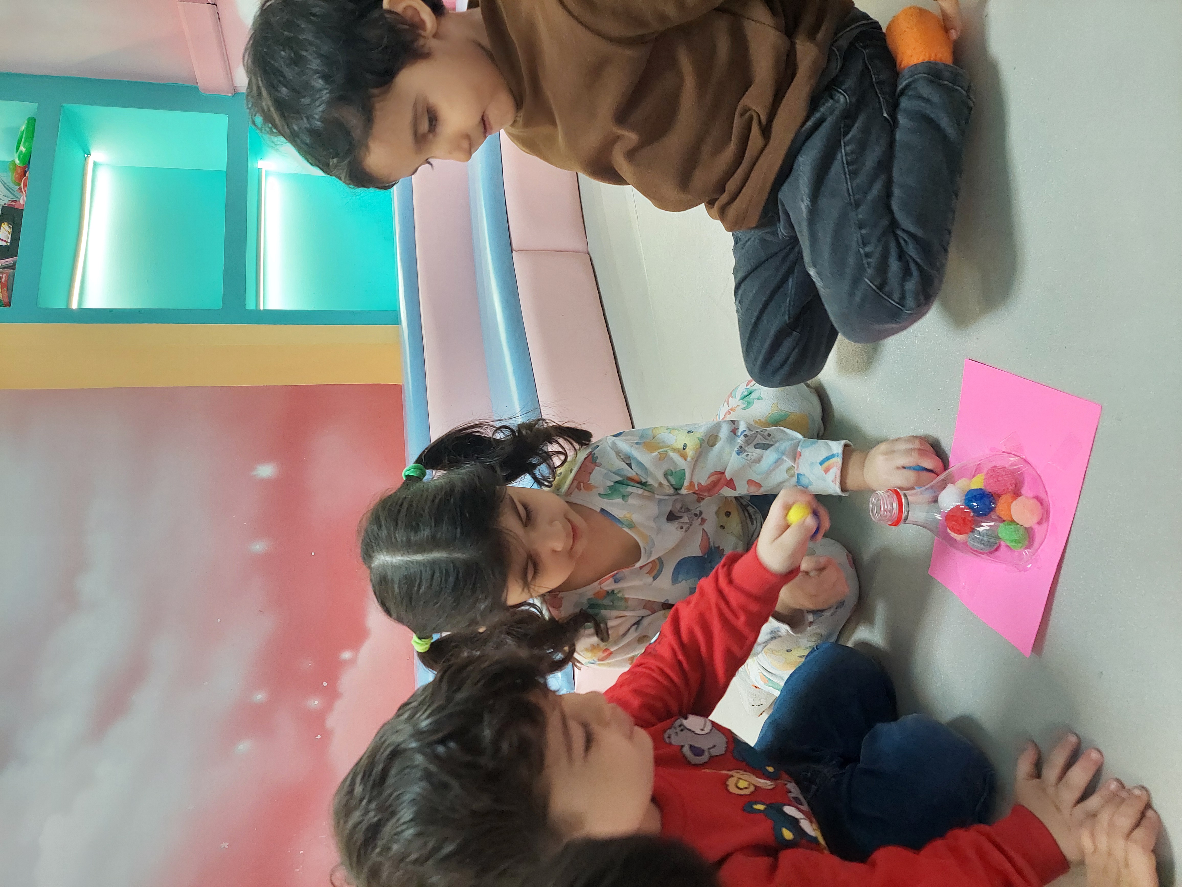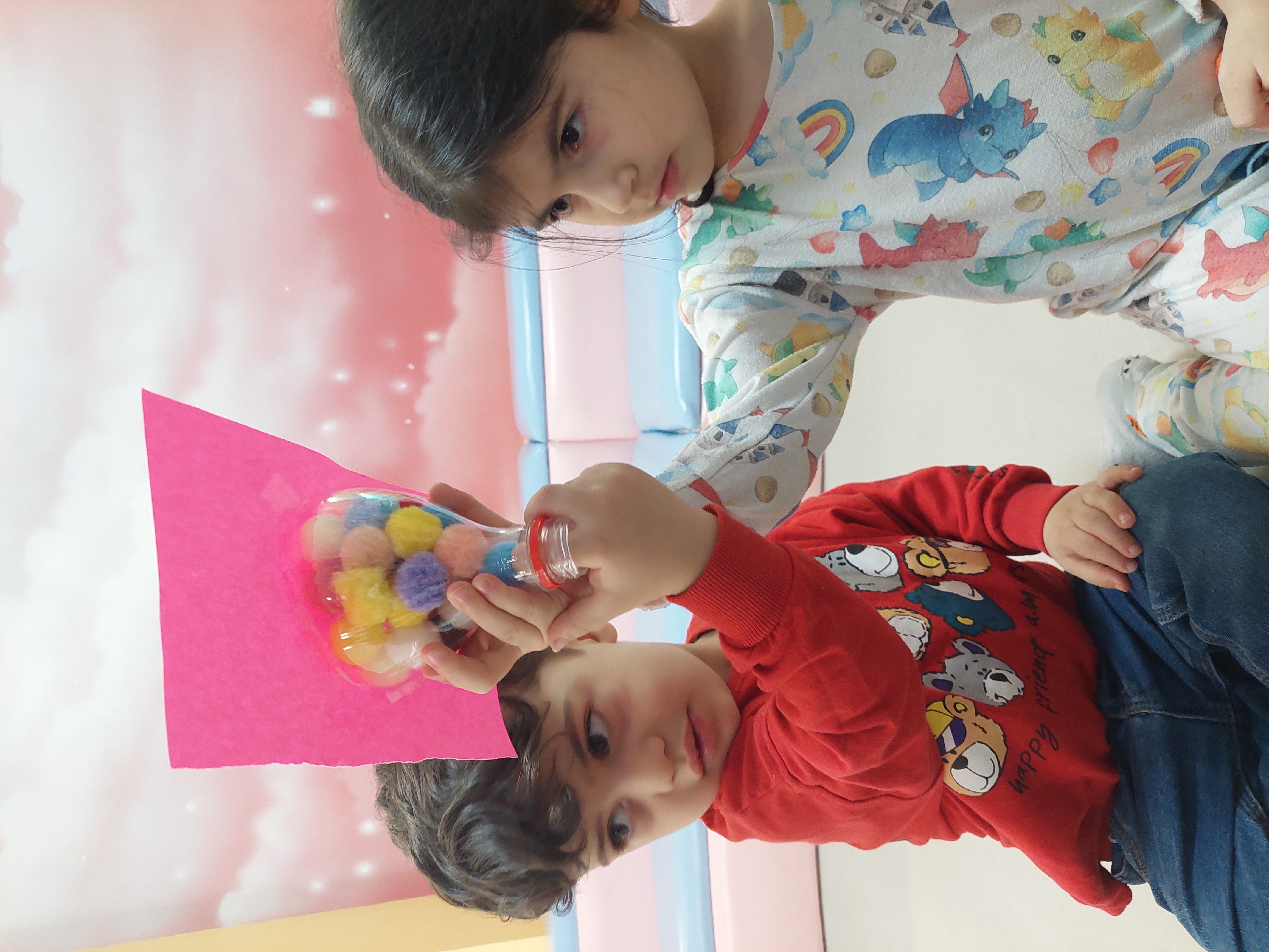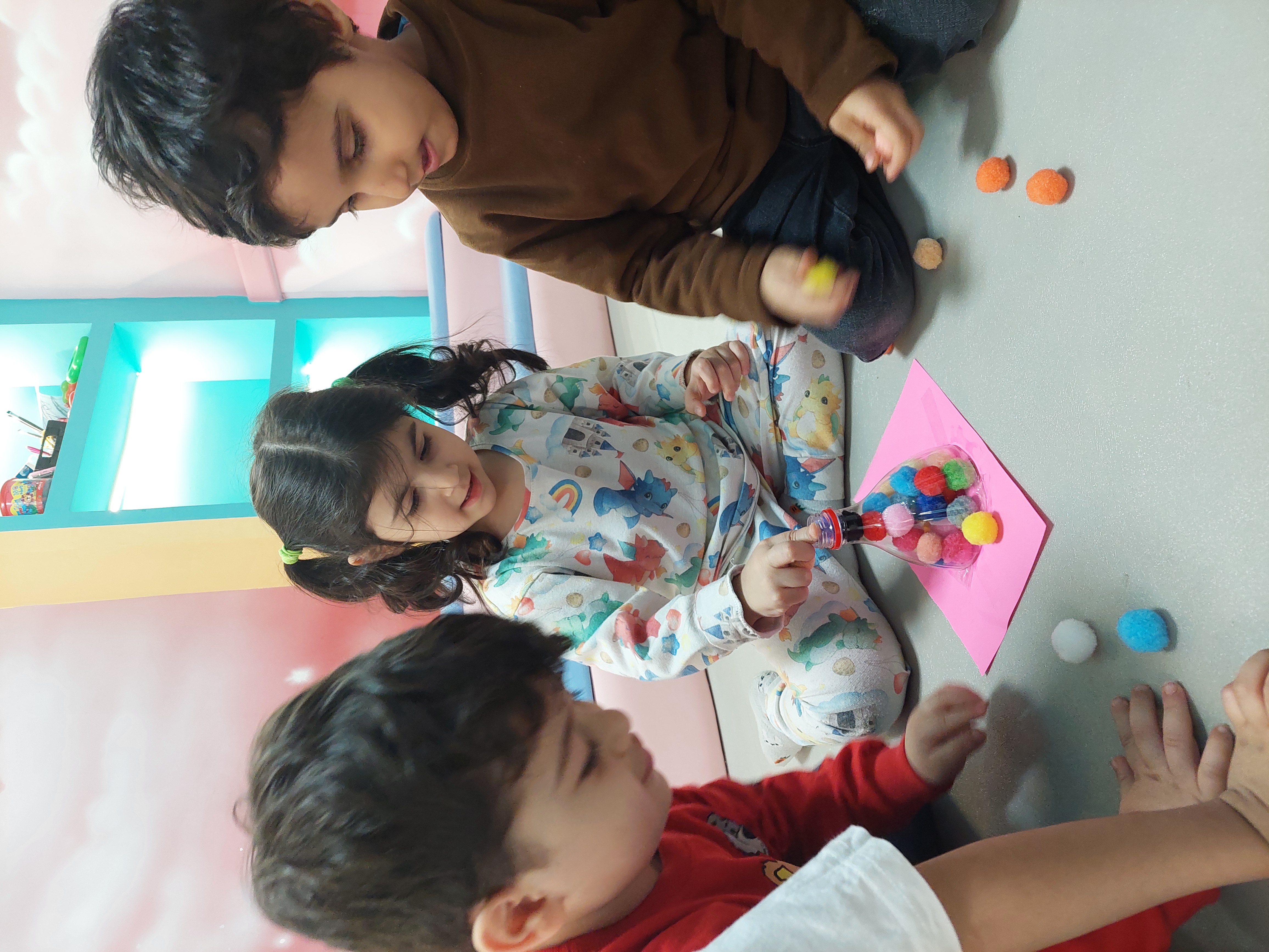 فعالیت بعدی دستان خلاق من داشتیم که سعی کردیم پوم پوم هارو داخل بطری بیندازیم😍