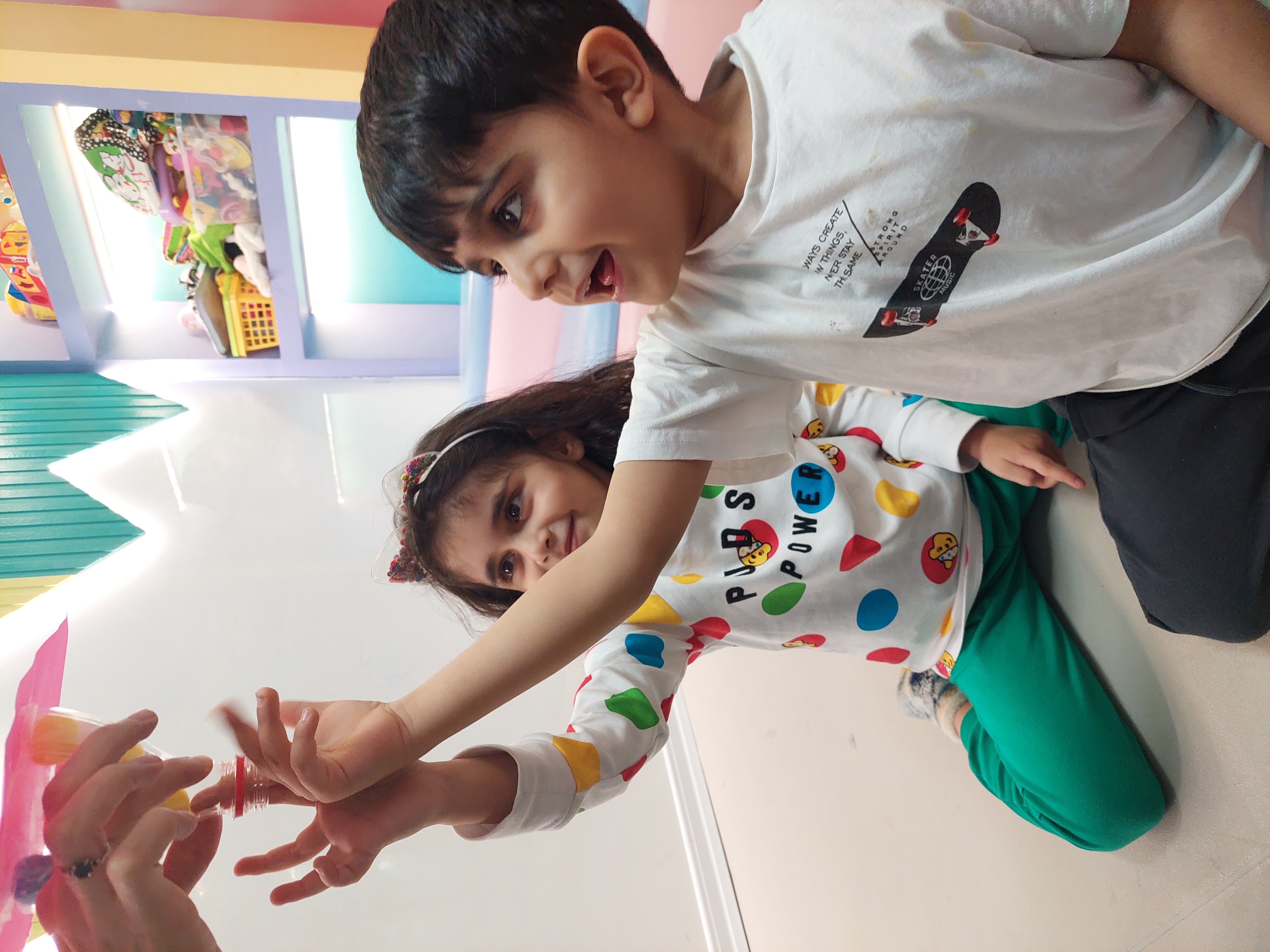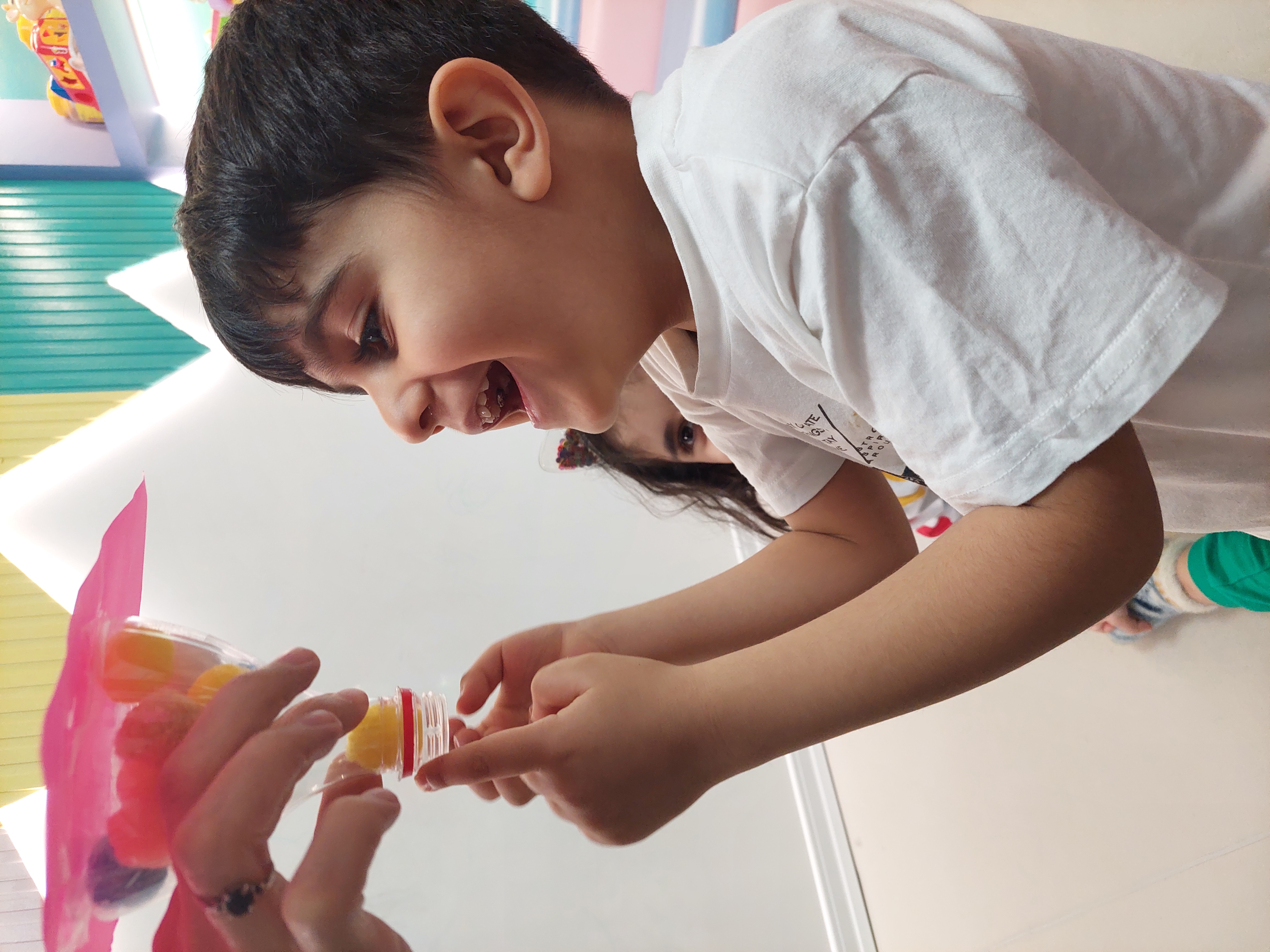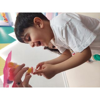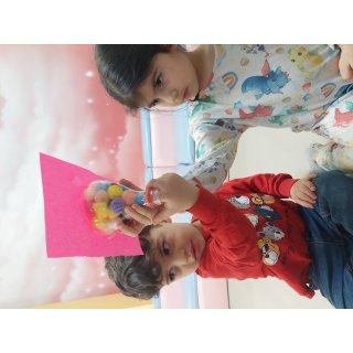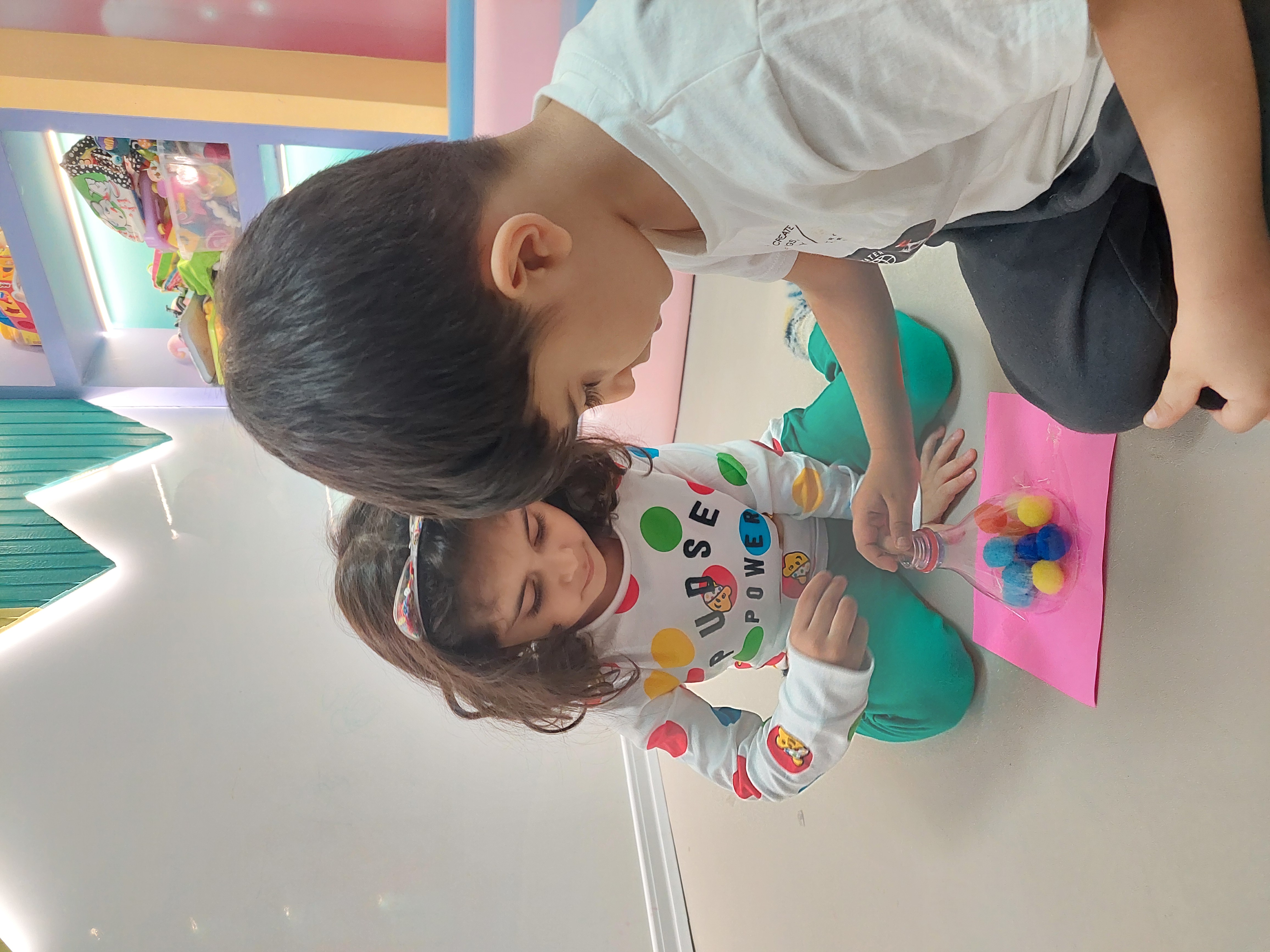 فعالیت بعدی دستان خلاق من داشتیم که سعی کردیم پوم پوم هارو داخل بطری بیندازیم😍