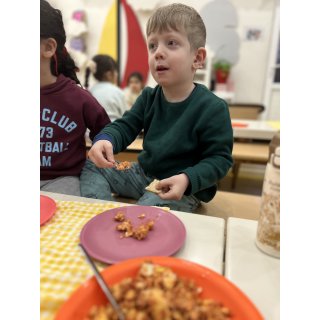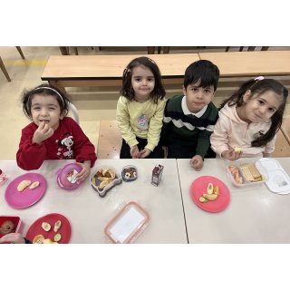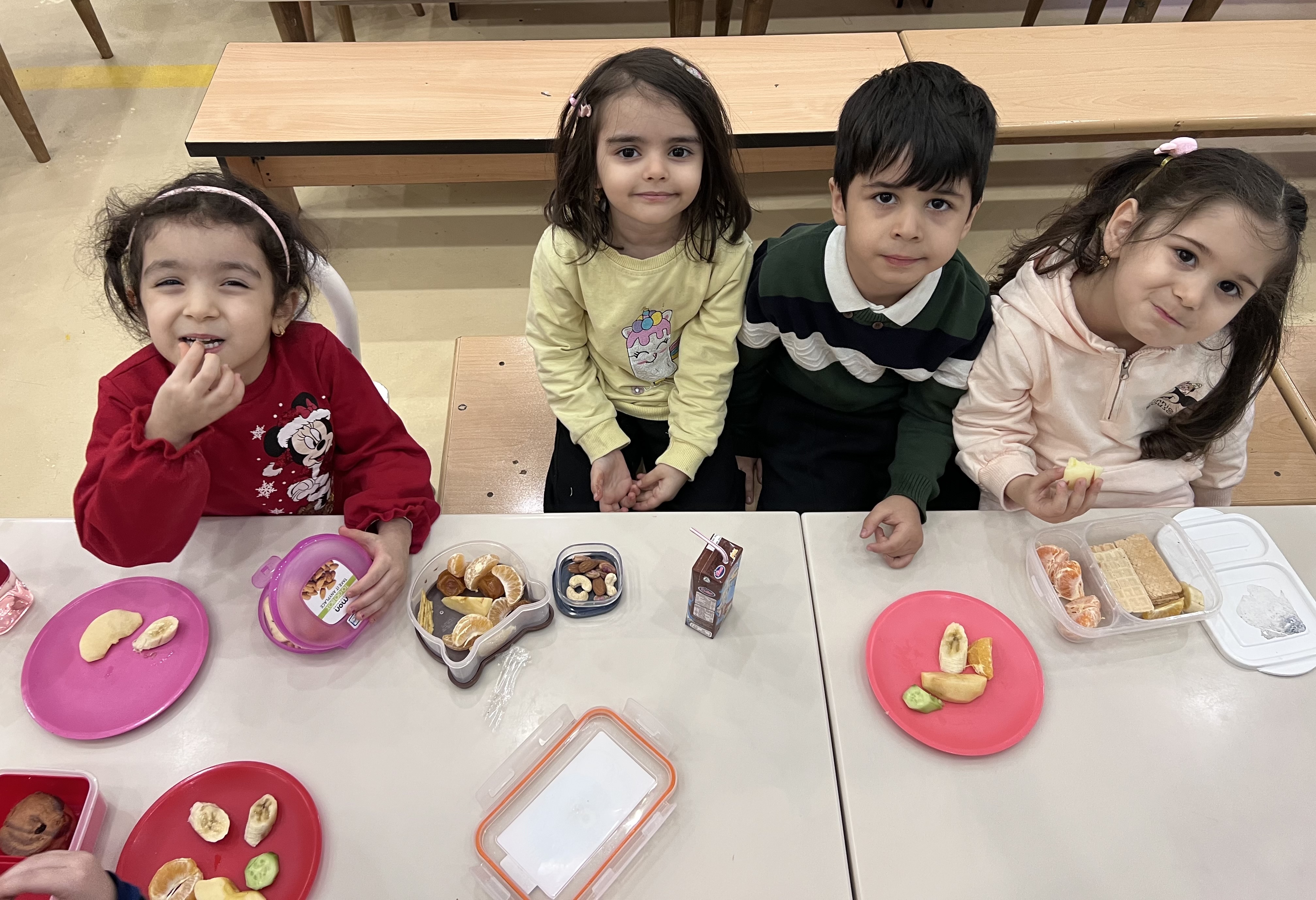 بعدشم رفتیم میان وعده و بشقاب میوه خوردیم🍌🍏🥒
