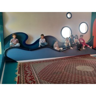 و توضیح میدهیم که درون دل زمین یه گردی خیلی داغ وجود داره و از آهن و مواد مذاب درست شده روی این هسته داغ یک گوشت نرم ولی داغ وجود داره این لایه شبیه سفیده تخم مرغ این قسمته از کوه ها بیرون میاد میشه آتشفشان این قسمت با رنگ نارنجی خمیر دور هسته گرد میشود پوسته زمین مثل پوسته تخم مرغه این لایه بیرونی ترین قسمت زمینه و نسبت به هسته و گوشت سردتره ما روی این لایه زندگی میکنیم روی پوسته کوه دریا ،جنگلخانه و شهرها قرار دارند و نازکه با قهوه ای یا سبز پوسته را نازک روی رنگ نارنجی رنگ گرد میکنیم با استفاده از چاقو ره زمین را برش میزنند و لایه ها نمایان میشود 👈مدیتیشن کوه :بچه ها به صورت درازکش قرار بگیرند صدای طبیعت و پرنده با اسپیکر پخش شود. مربی میخواهیم به یک کوه آرام و روشن و مهربان سفر کنیم چشمهات رو ببند تا بتونی اونجا رو تصور کنی مربی با صدای شمرده یه نفس عمیق بکش و آروم بیرون بده... تصور کن هوای خنک کوه را نفس میکشی... تصور کن روی یک کوه بزرگ ایستادی آسمون آبی بالای سرت هست و یه باد نر صورتت رو نوازش میدهد، صدای پرنده ها میاد. همه چیز آرومه... کوه هیچ وقت عجله نداره.... محکم ایستاده... حتی وقتی باد میوزه یا بارون میاد خوب همون جا میمونه...... تو هم مثل کوه قوی هستی با خودت زیر لب تکرار کن من آرام هستم من مثل کوه قوی هستم من به خودم اعتماد دارم کم کم میخواهیم از کوه برگردیم... یه نفس عمیق بکش دستهات روکش بده..... چشمهات رو باز کن. بچه ها با استفاده از خمیر میتوانند کوه بسازند اگر تو کوه بودی دوست داشتی چی روی دامنه ات باشه؟