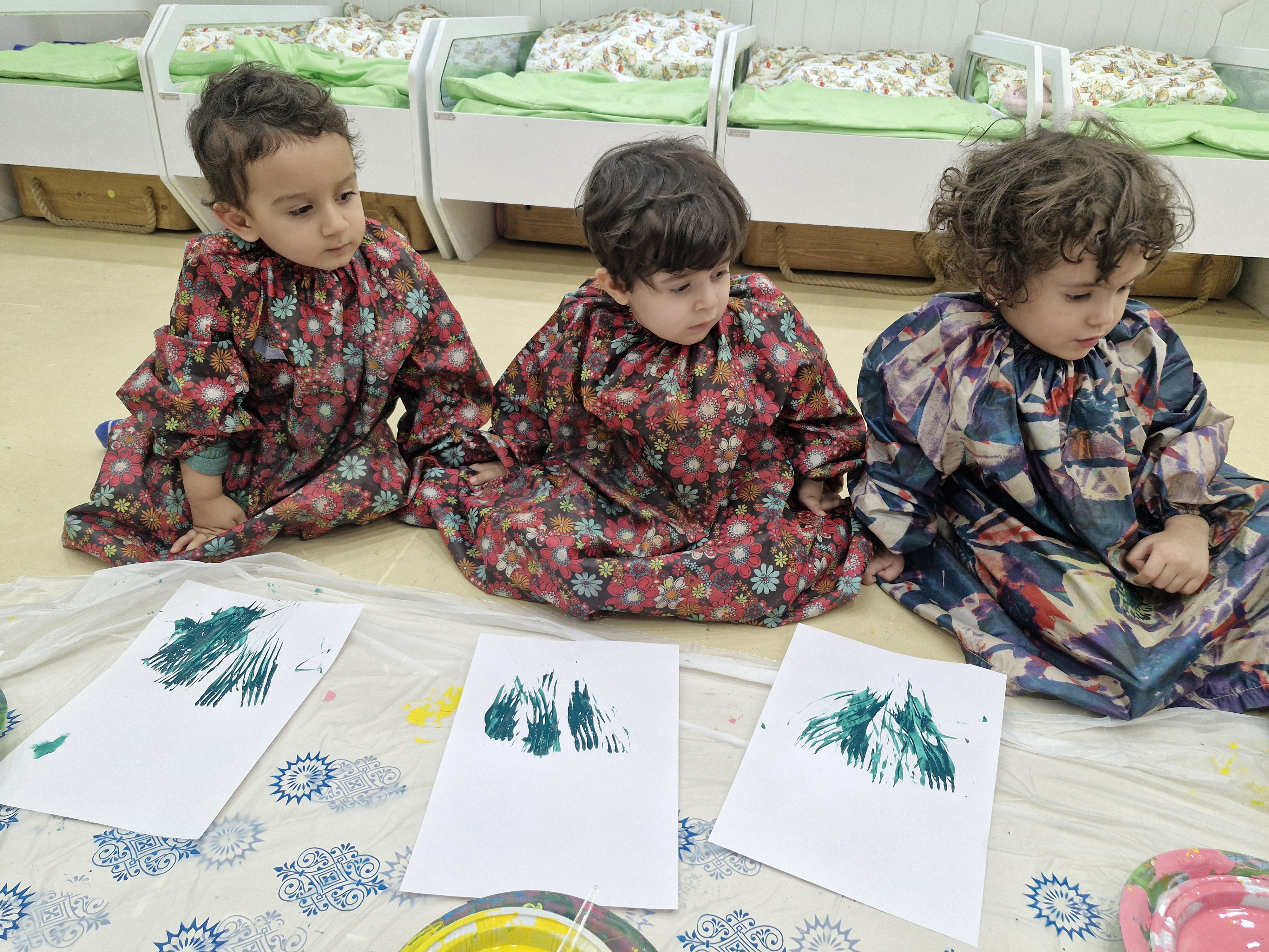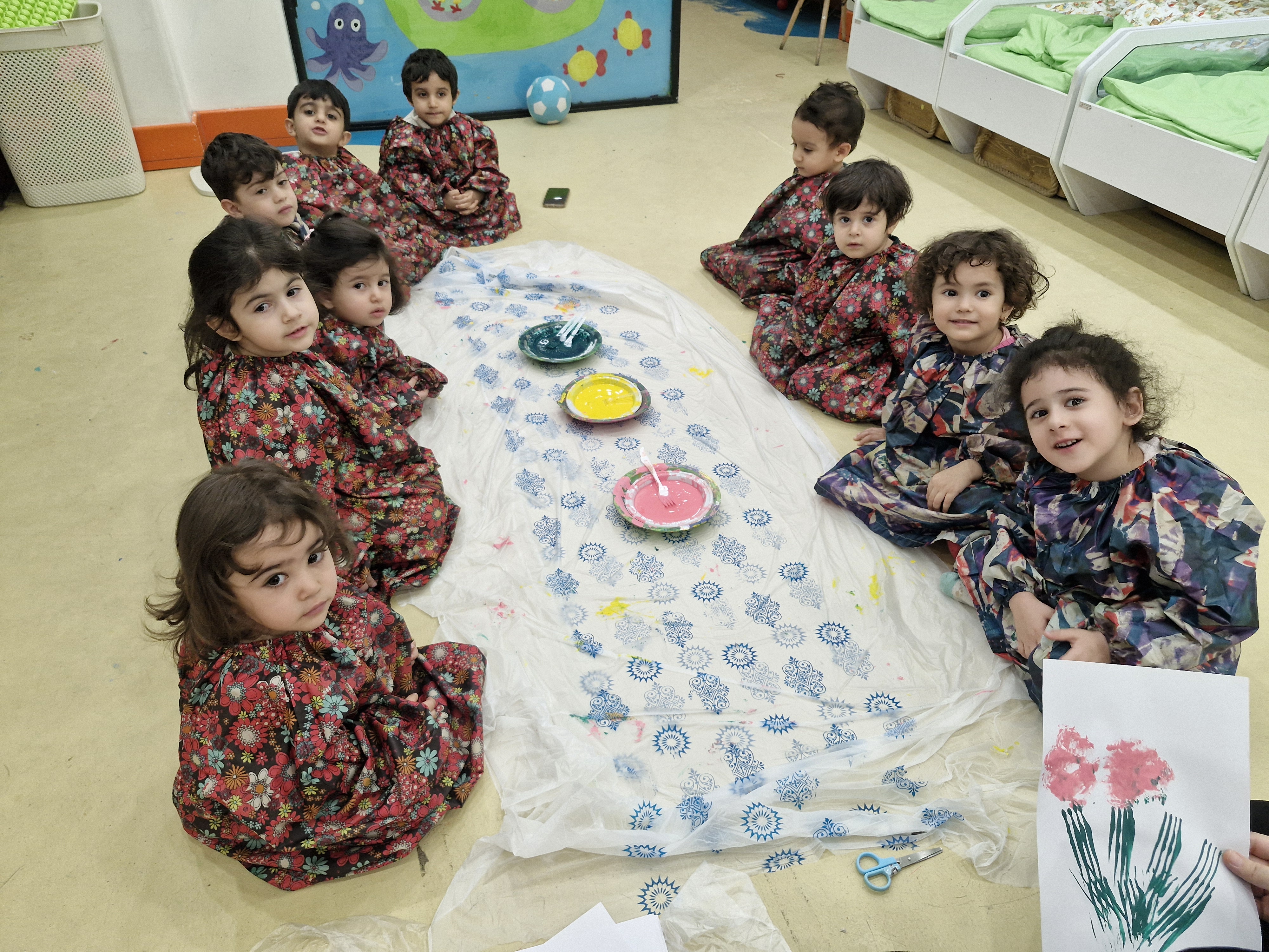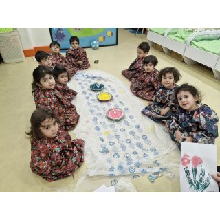 بعدش رفتیم کلاس دنیای رنگ ها با آبرنگ گل های رنگارنگ برای باباهای عزیز درست کردیم.🌷🌻🌹