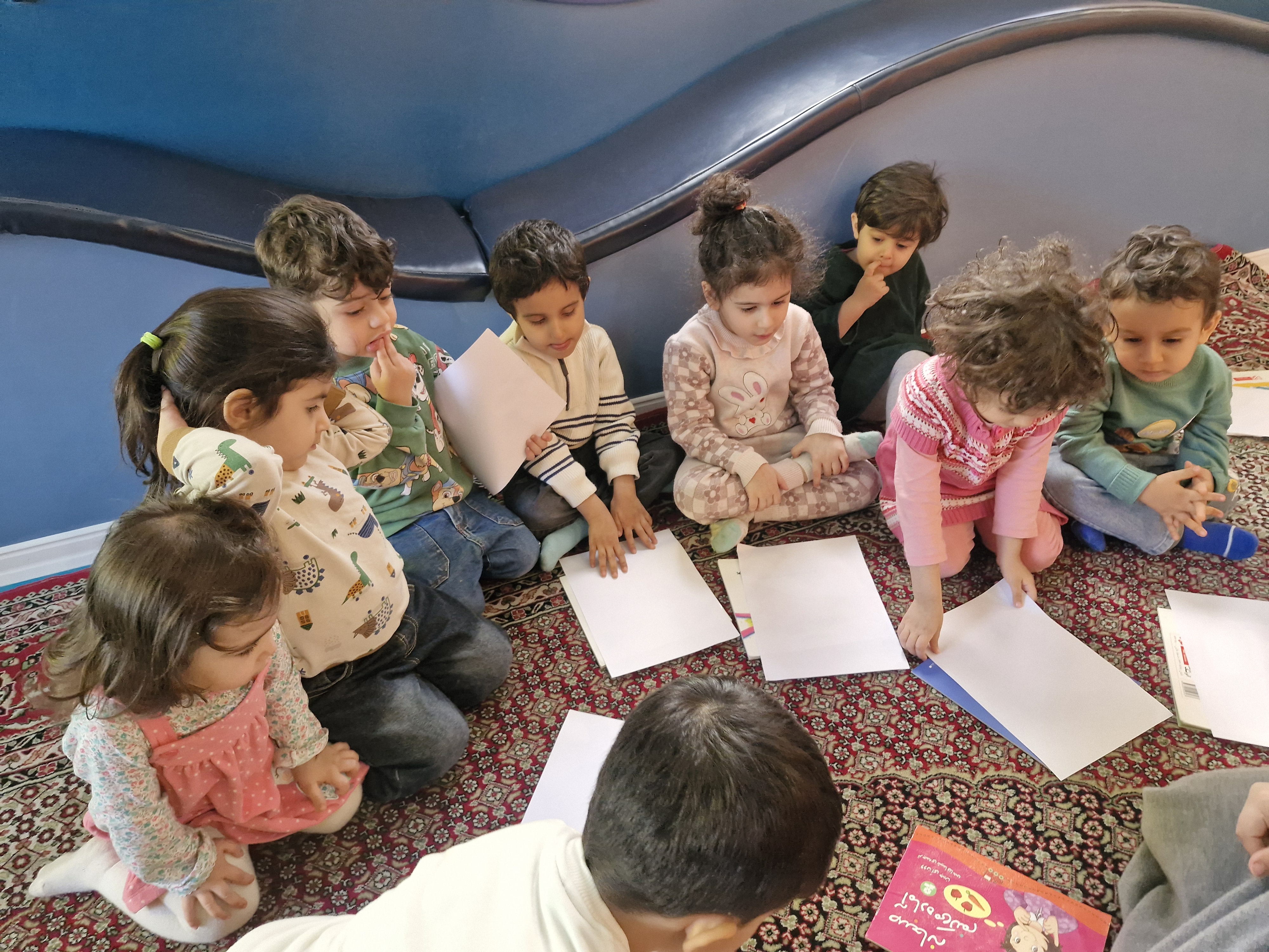 بعدش رفتیم کلاس خاله نادره مهربون باهم کتاب داستان خوندیم و بعدش نقاشی های مربوط به داستان کشیدیم و نمایشش را اجرا کردیم.🤗📕