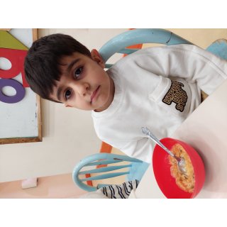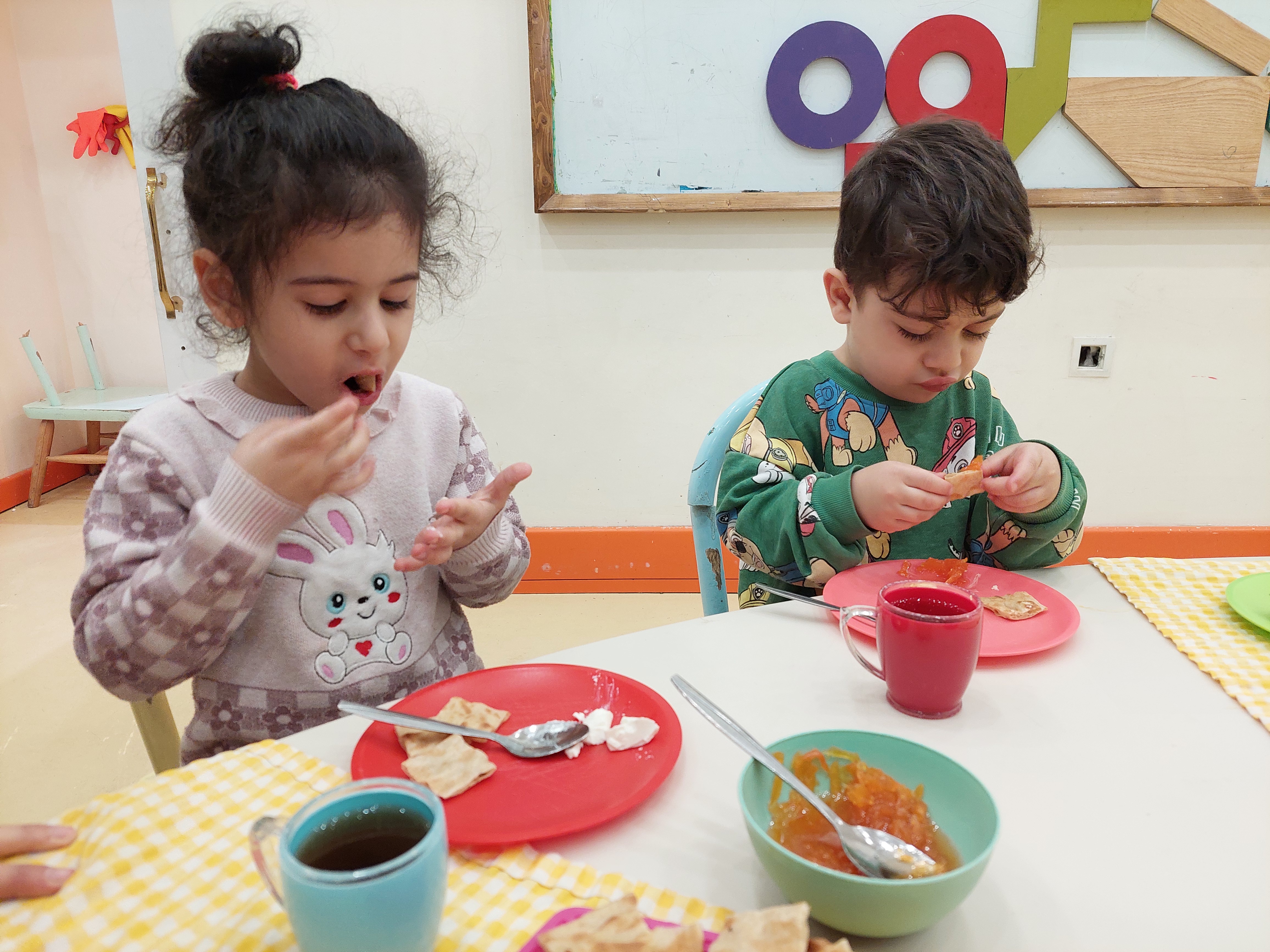 امروز هم اول از همه رفتیم صبحانه که نون و کره و مربا بود، نوشه جان کردند😋🍞🧈🥕 سپس رفتیم صبحگاه