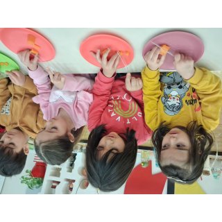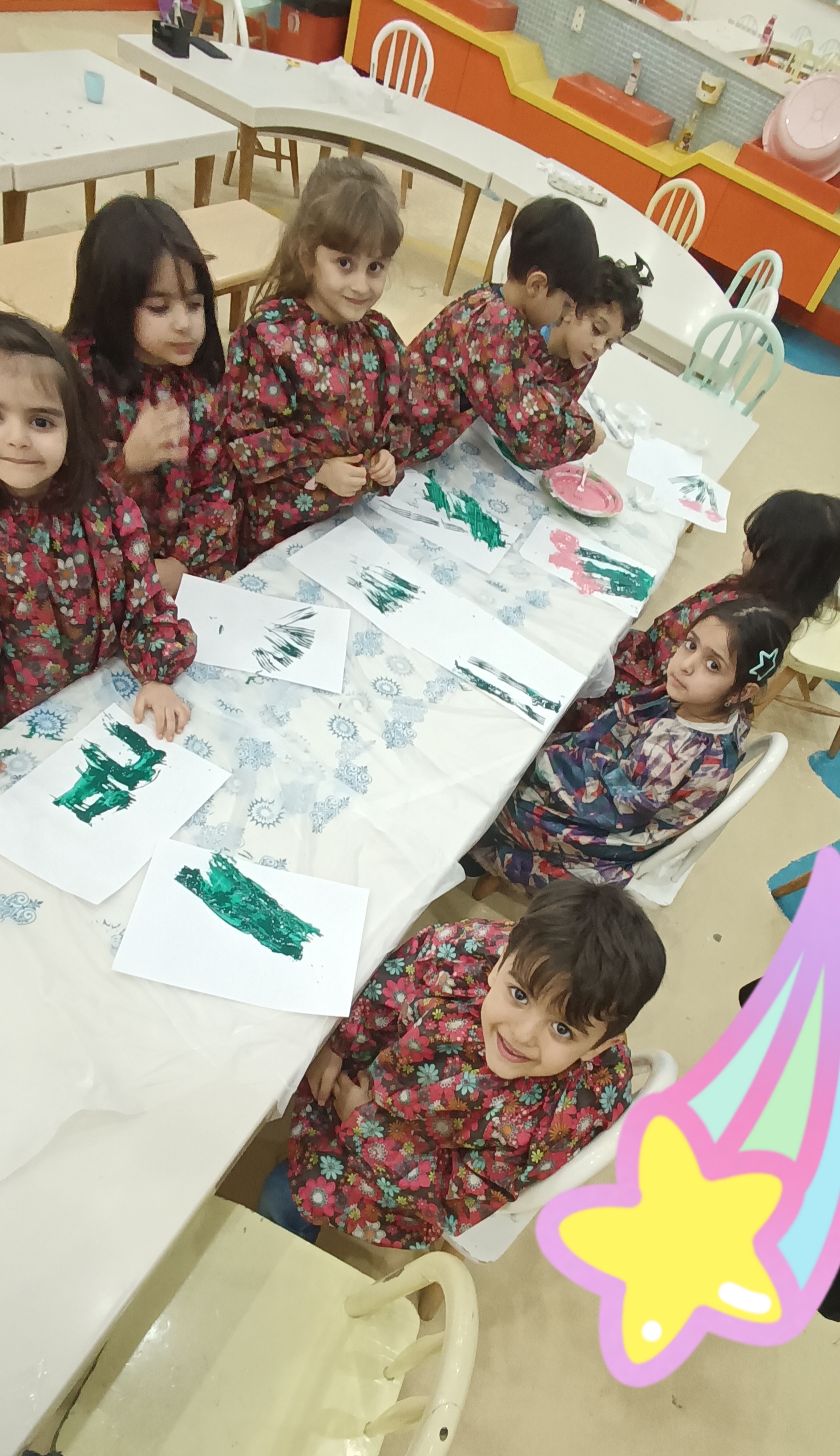 بعد از بازی وقت کلاس دنیای رنگ بود که با چنگال و رنگ بچه ها گل کشیدند😁