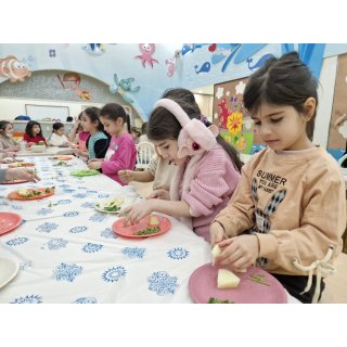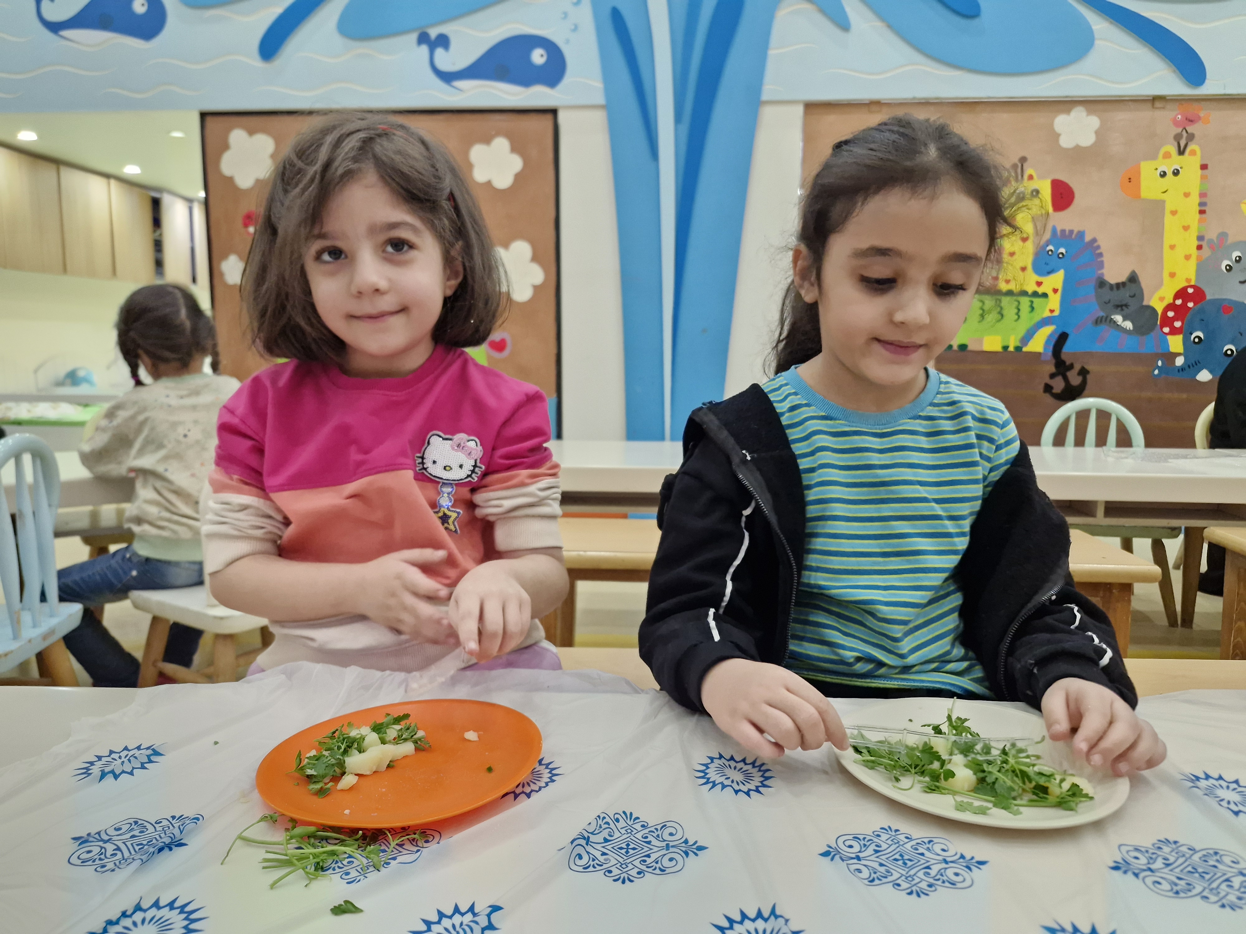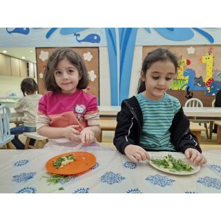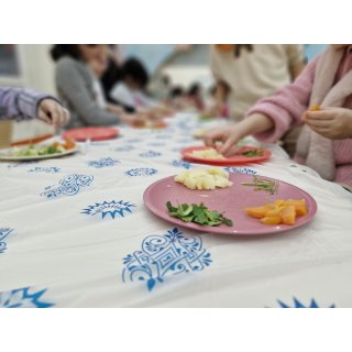 🌸 ایستگاه دوم بچهها مواد سوپ را اعم از مرغ،سیب زمینی،جعفری،هویج را خرد کرده و به سوپ اضافه شد