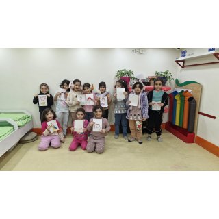 بچهها با انگشت و رنگ چند شاخه گل کشیدند و آن را به پدرها تقدیم کردند