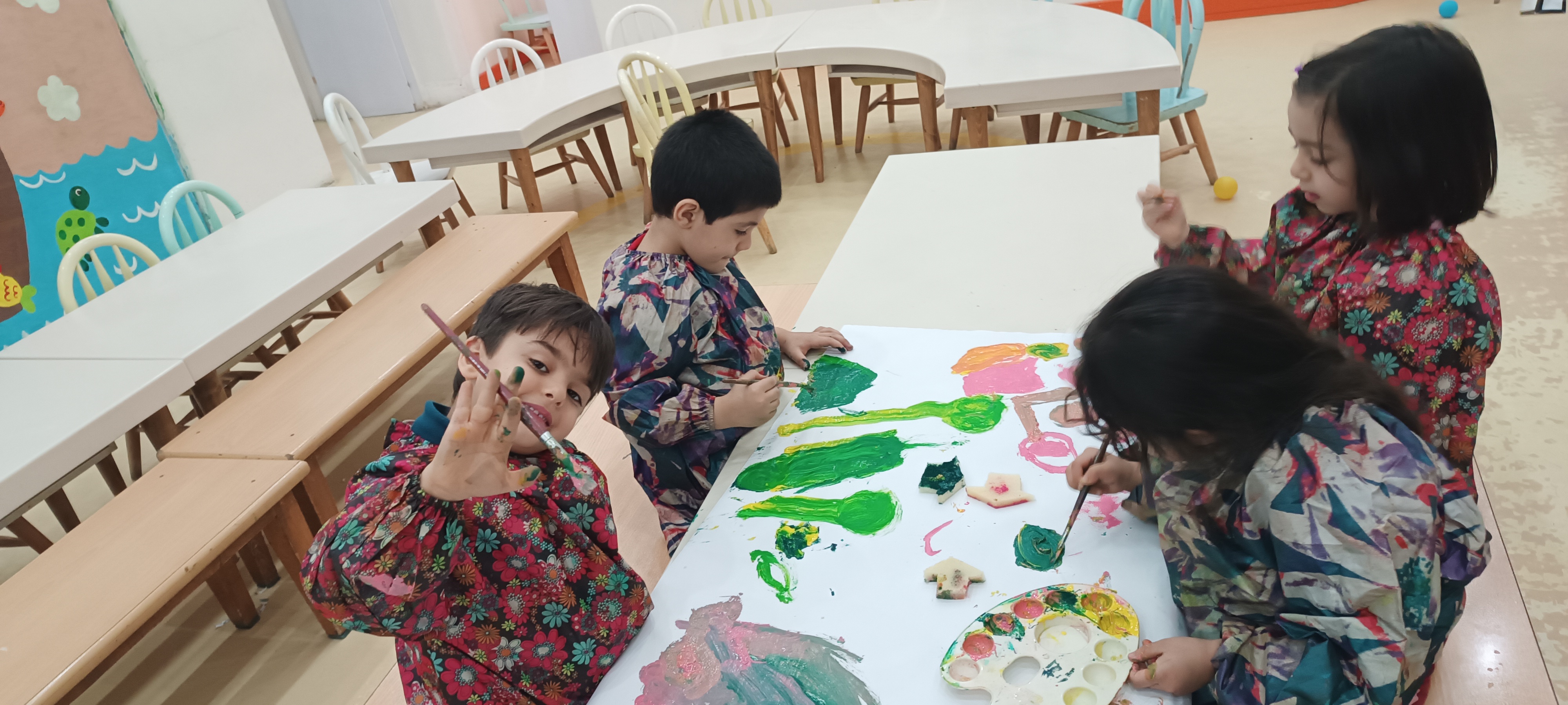 حالا نوبت کلاس کثیفکاری بود که امروز با کمک رنگ و اسفنج های شبیه به خونه کلی عکس خونه روی کاغذ چاپ کردیم و لذت بردیم..🤩