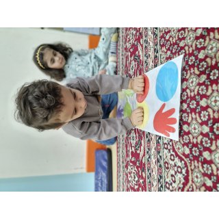 بعدش هم کلاس پرورشی داشتیم با خاله الهه مهربون باهم نقاشی کردیم .✨️☺️