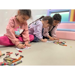 🌸 ایستگاه دوم یعنی مسی پلی بچهها کاغذ رولی را با آبرنگ شکلهای مختلف کشیدند از جمله خرس🐻 و طرحهایی که خودشان دوست داشتند🖌️🎨