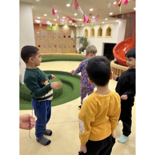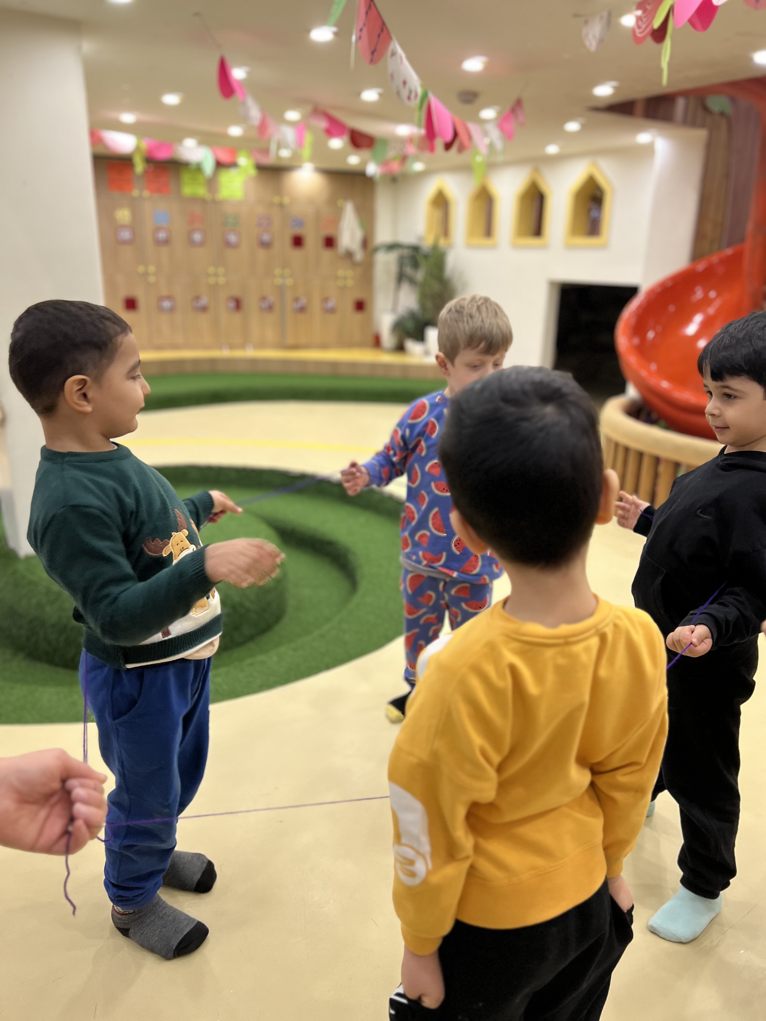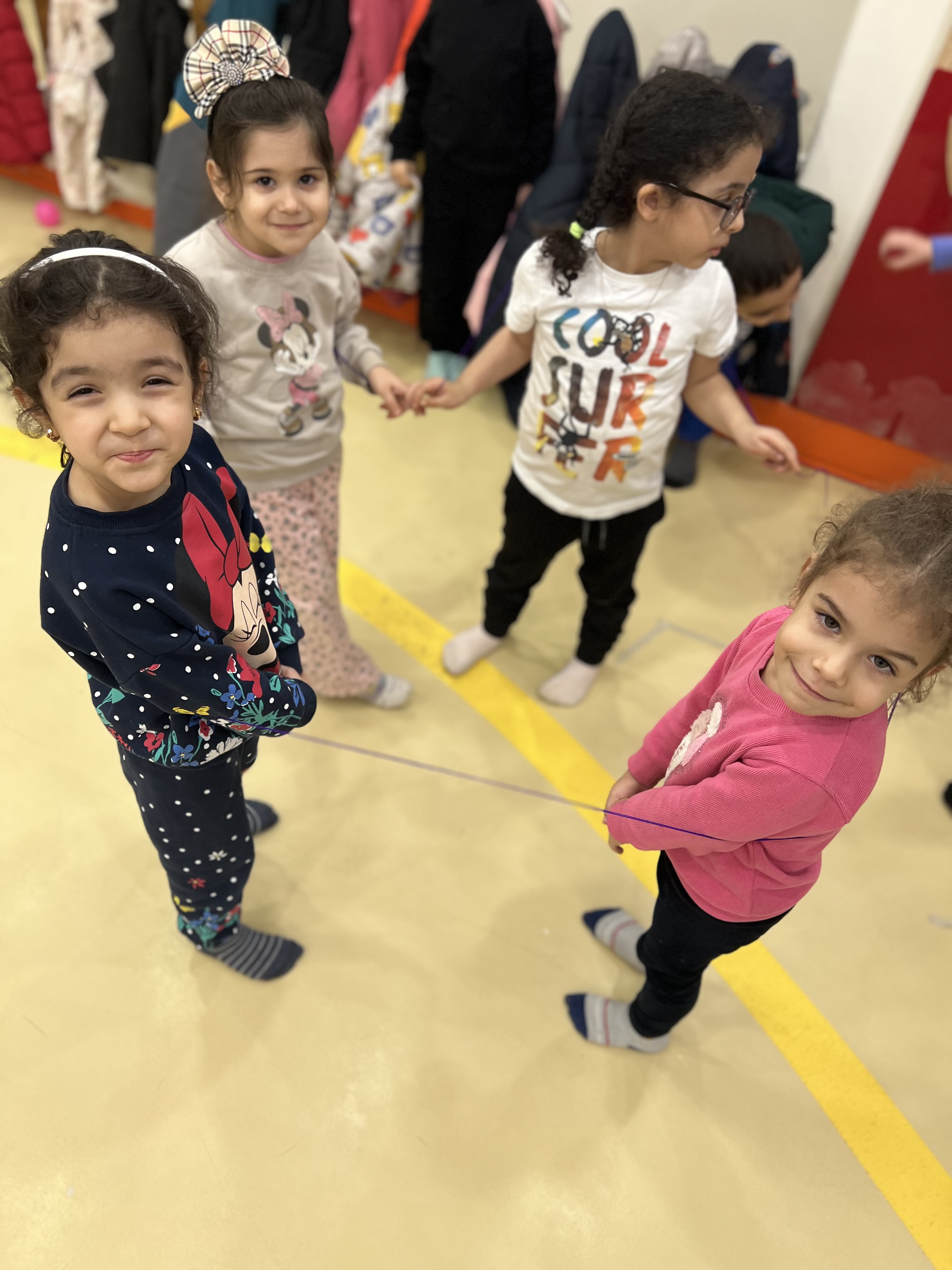 ایستگاه مهارت های زندگی بود که یه بازی گروهی انجام دادیم ⛳️ صندلی بازی و ساخت شکل های مختلف داخل کاموا