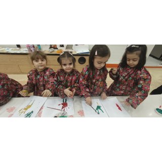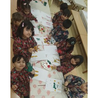 حالا نوبت کلاس کثیفکاری بود که امروز با کمک رنگ و انگشت هامون روی کاغذ درخت و با میوه هاش کشیدیم.
