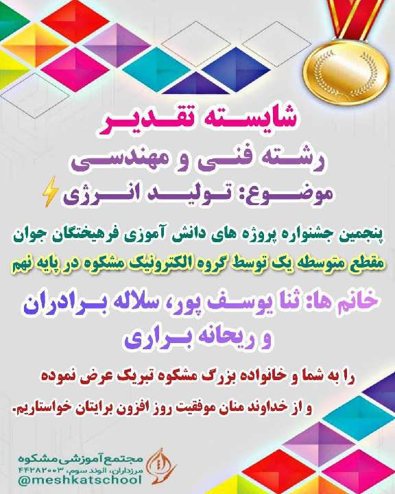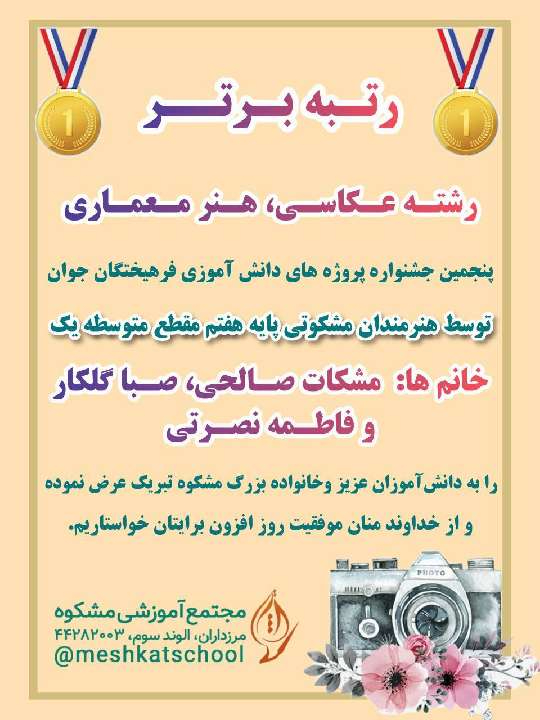 رویدادهای مدرسه ناصریان ۰ ۴ ۱۱ روز پیش افتخارات علمی مجتمع مشکوة افتخارات🏆 خلاصه : دختران مشکوتی در حوزه علمی خوش درخشیدند🏆 گالری تصاویر : × عنوان تصویر برای درج دیدگاه باید ابتدا به عنوان کاربر به سایت وارد شده باشید.