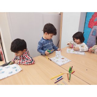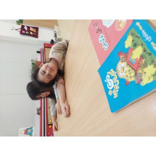 بعد رفتیم کلاس، ابتد یک کتاب داستان برای لاله ها خوانده شد📚 سپس با چفتوها بازی کردیم